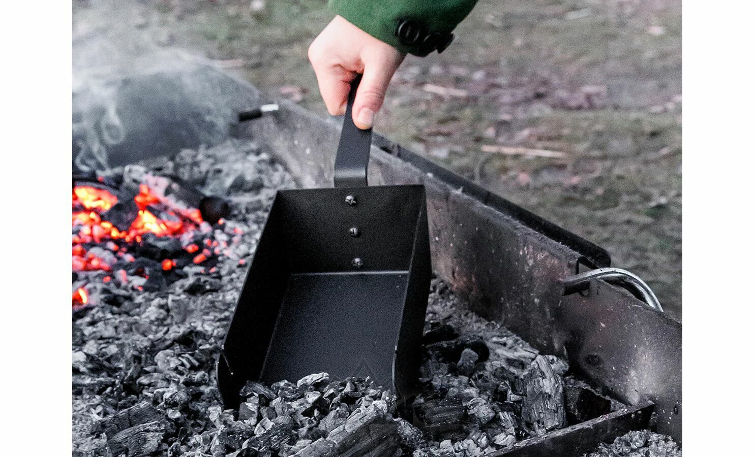 - Великий обʼєм лопатки для швидкого наповнення мангала.