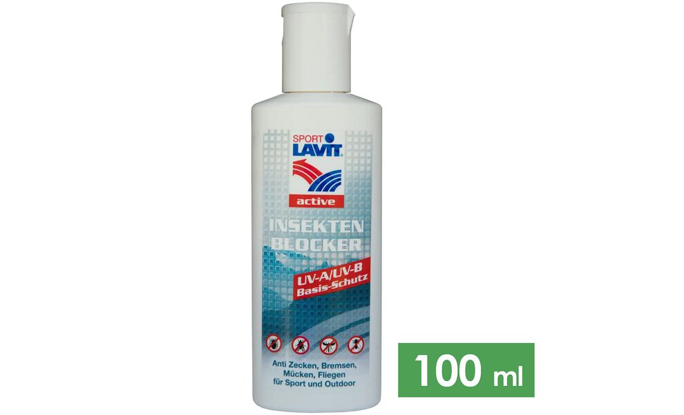 Sport Lavit Insekten Blocker — лосьйон для захисту від комах, що забезпечує надійний захист від кліщів, кусючих мух, комарів та мошок протягом 4 годин після нанесення. Додатково забезпечує шкіру базовим захистом від ультрафіолетового сонячного випромінювання UV-A і UV-B, а також захищає від вірусу Зіка.