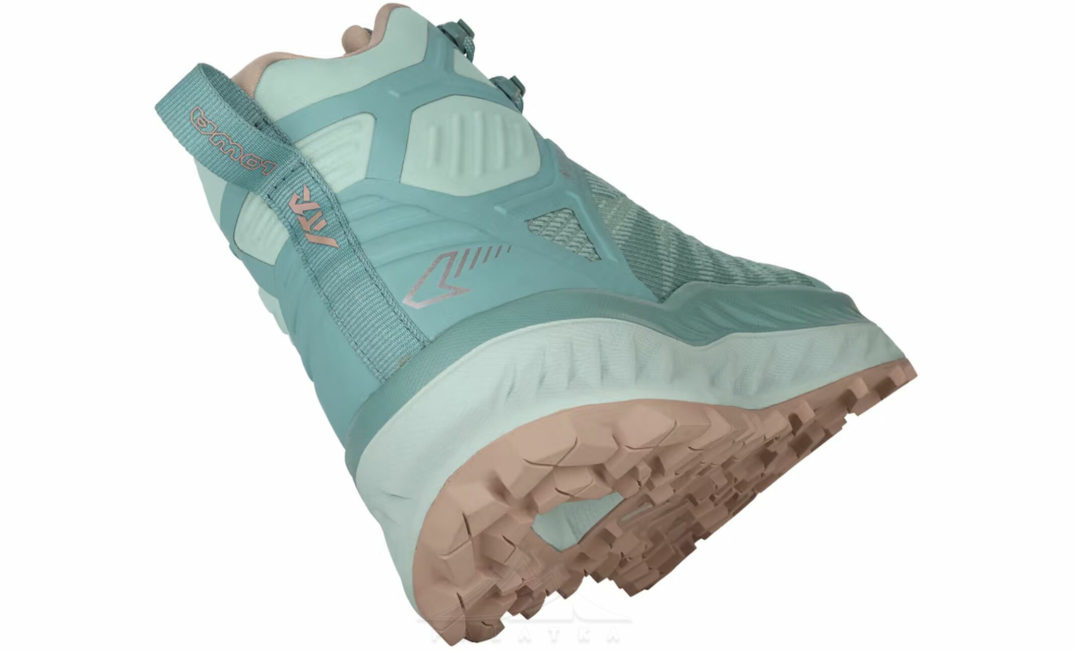 - Проміжна підошва LOWA® DynEVA® з надлегкої піни EVA потрійної щільності забезпечує відмінну амортизацію і високий ефект пружності по всій довжині взуття.
