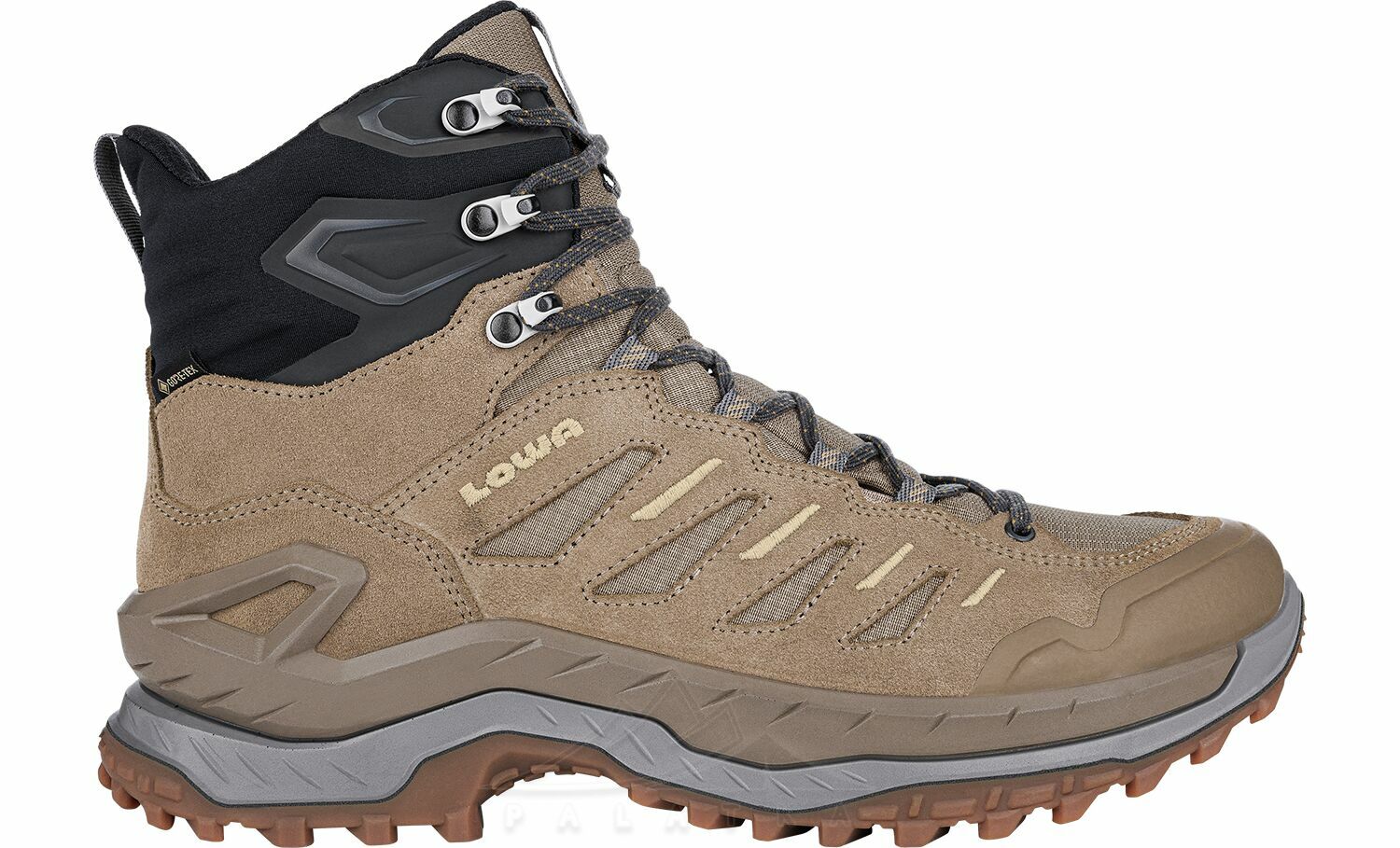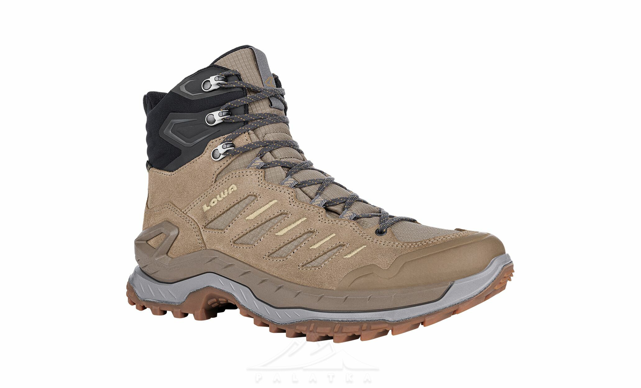 - Технологія проміжної підошви LOWA Monowrap® — каркас з тривимірною конструкцією комфортно охоплює стопу і підтримує її під час руху по нерівній поверхні.