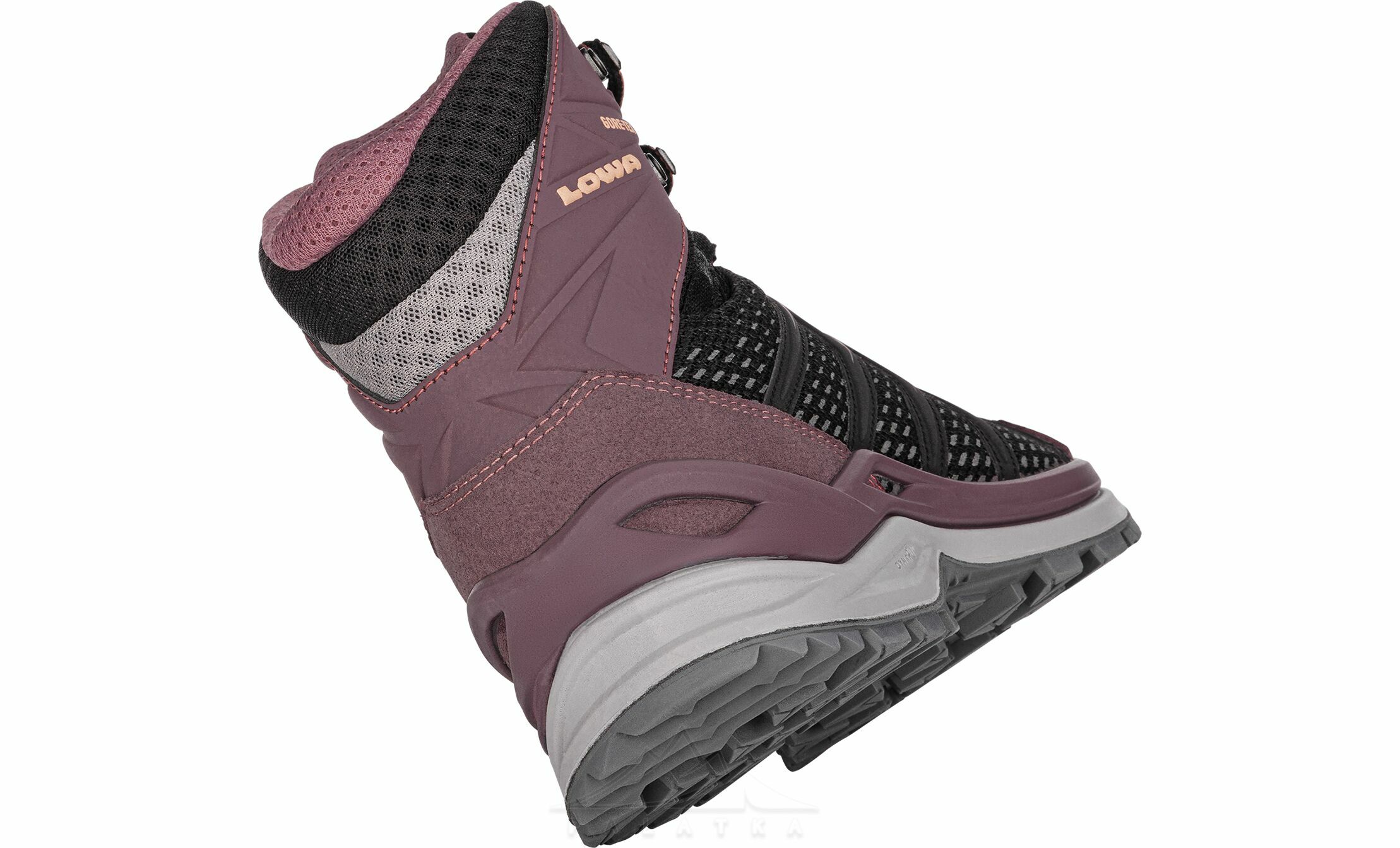 - Технологія проміжної підошви LOWA Monowrap® — каркас з тривимірною конструкцією комфортно охоплює стопу і підтримує її під час руху по нерівній поверхні.