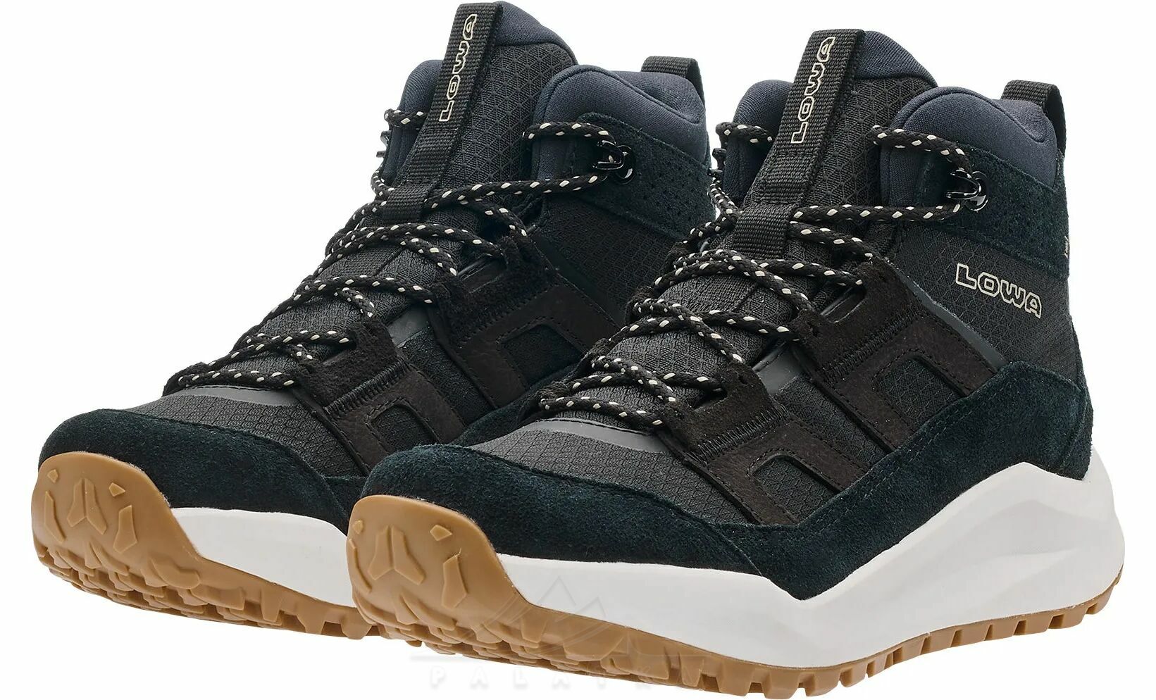 LOWA Kaloya GTX MID — жіночі водонепроникні черевики з нубуку та текстилю, створені для комфортного щоденного носіння. Підійдуть для прогулянок містом, скандинавської ходьби, легкого хайкінгу та активного відпочинку на природі.