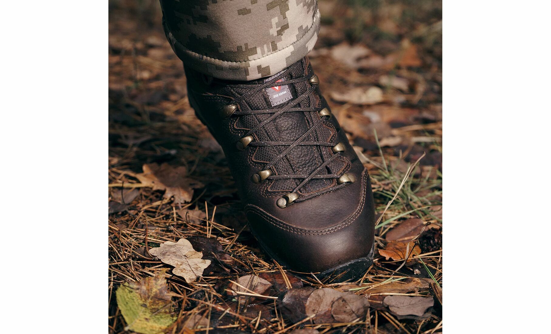 - Двозональна шнурівка дозволяє зручно регулювати верхню та нижню частини черевика окремо, забезпечуючи максимально точну посадку на нозі.