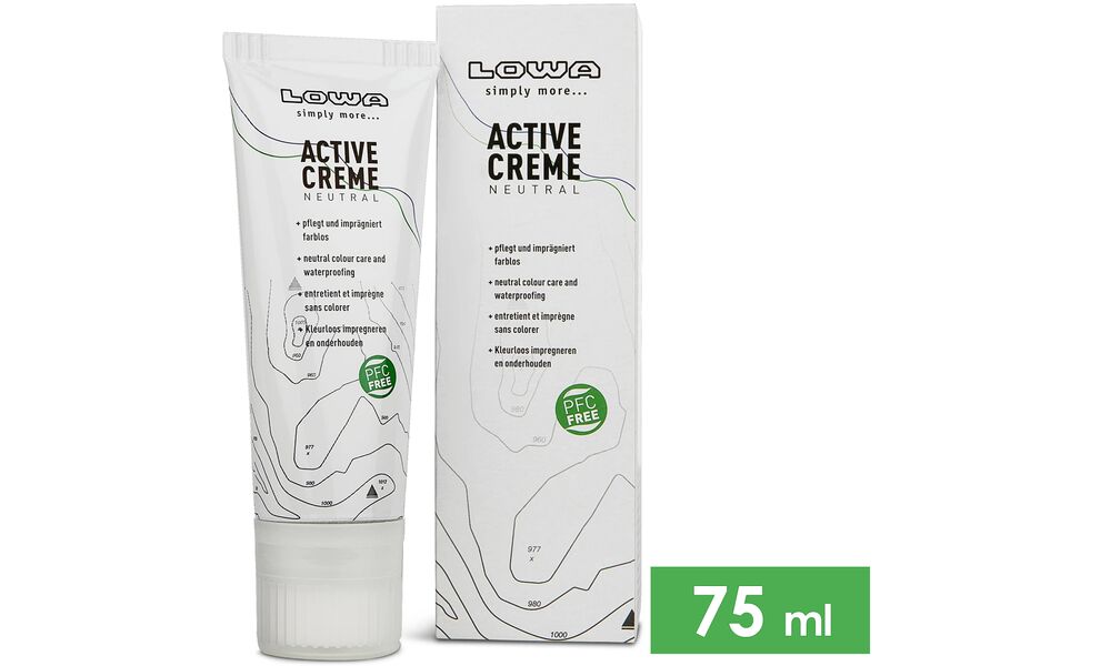 LOWA Active Creme — безбарвний восковий крем для догляду за шкіряним взуттям. Він допомагає продовжити термін служби виробів, зберігаючи їх еластичність, м'якість та первинний зовнішній вигляд.