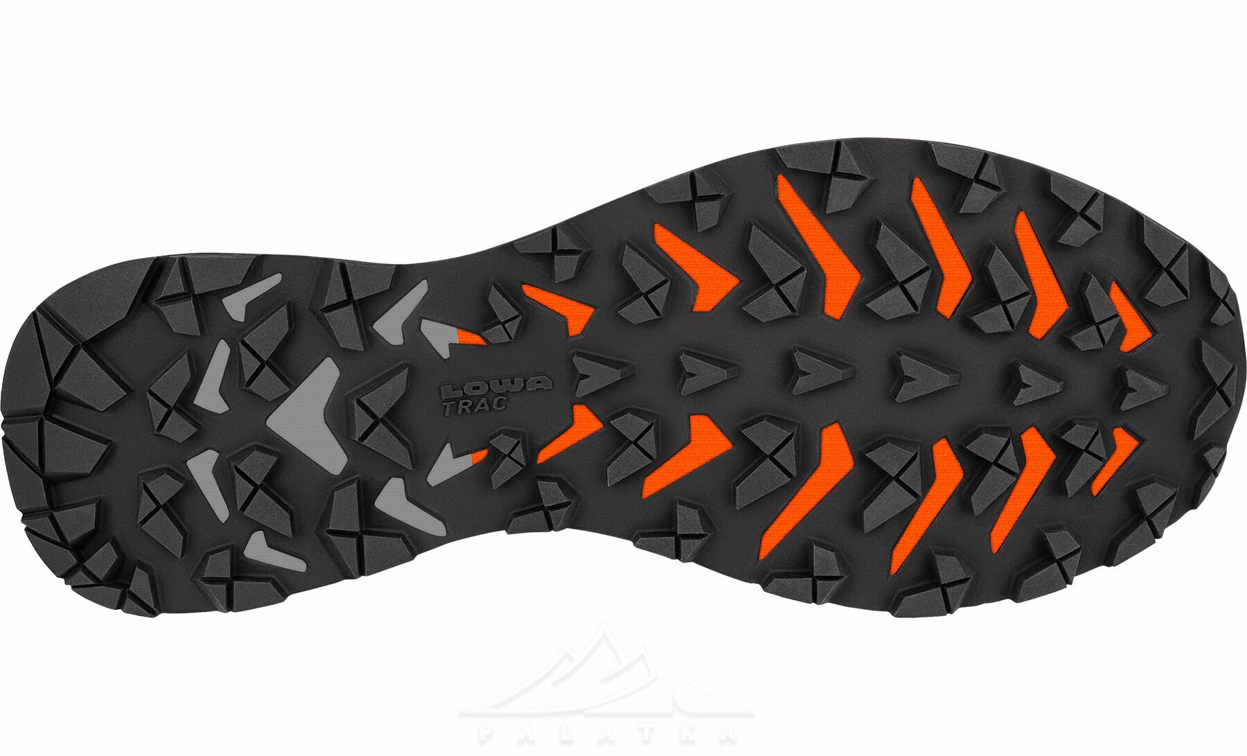 - Підошва LOWA® Trac® із злегка повернутими шипами гарантує ефективне зчеплення на різних типах рельєфу та під час швидкого руху.