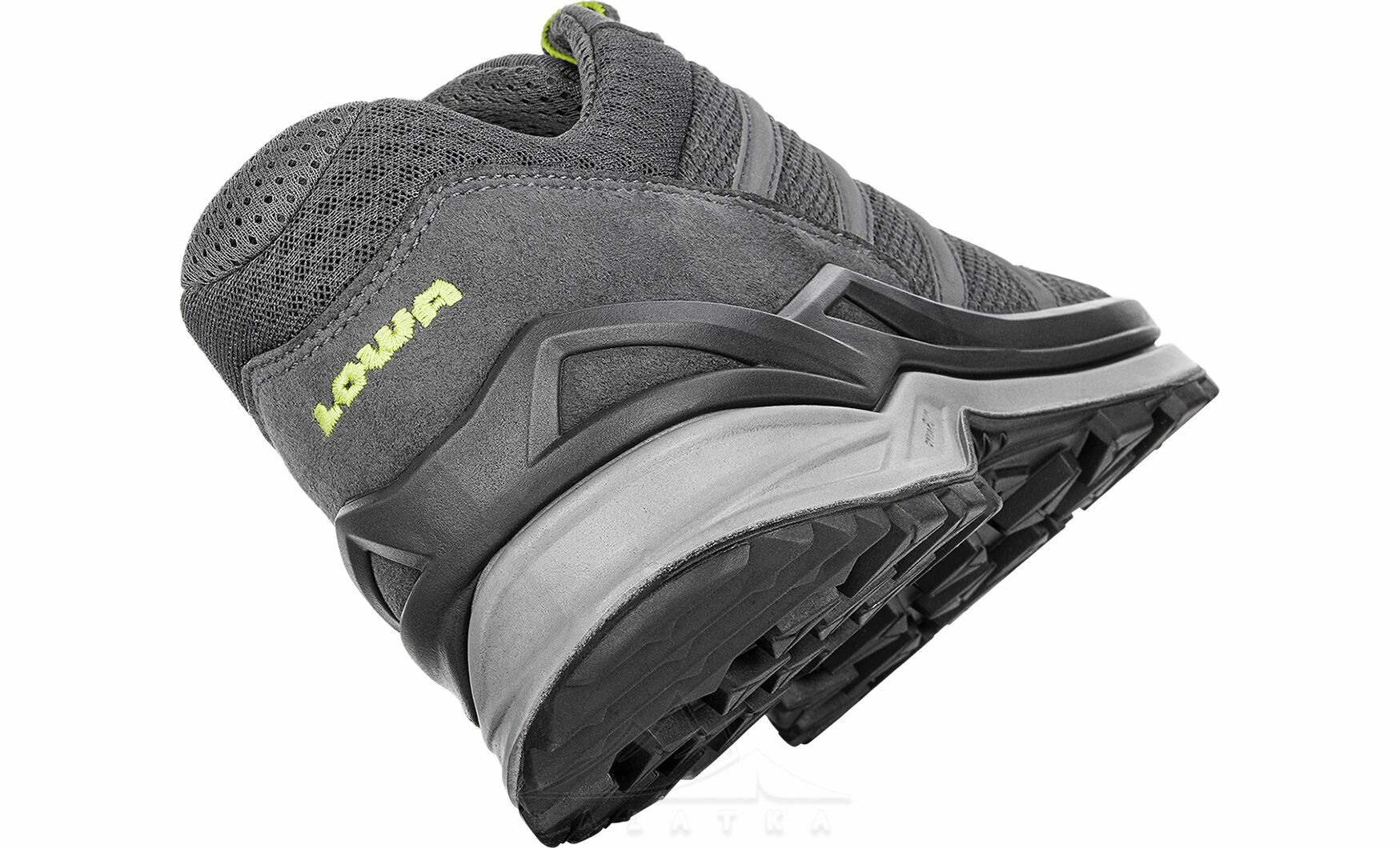 - Технологія проміжної підошви LOWA Monowrap® — каркас з тривимірною конструкцією комфортно охоплює стопу і підтримує її під час руху по нерівній поверхні.