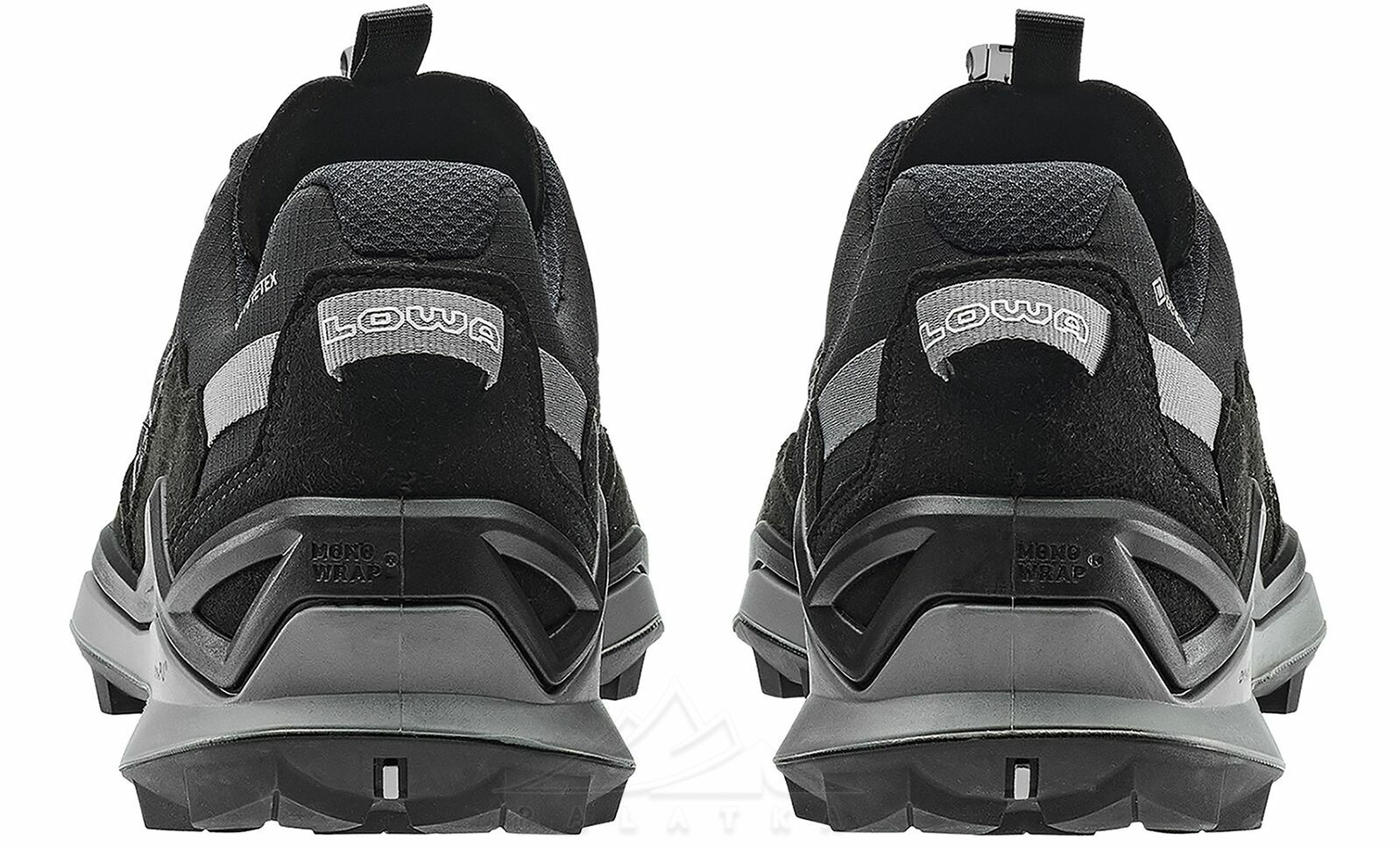 - Технологія проміжної підошви LOWA Monowrap® — каркас з тривимірною конструкцією комфортно охоплює стопу і підтримує її під час руху по нерівній поверхні.