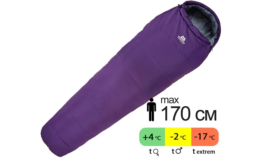 Демісезонний туристичний спальник Mountain Equipment Lunar II - Wmns Regular (01588/Tyrian Purple) до -2°C: з капюшоном
