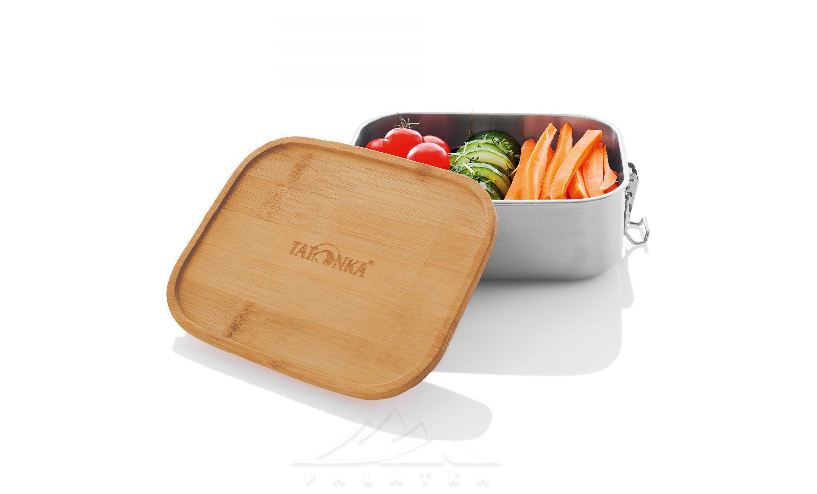Контейнер для їжі Tatonka Lunch Box I Bamboo — ланч-бокс із нержавіючої сталі у поєднанні з кришкою з бамбукового дерева. Універсальна ємність контейнеру підходить для зберігання харчових продуктів під час походів та побутового застосування.