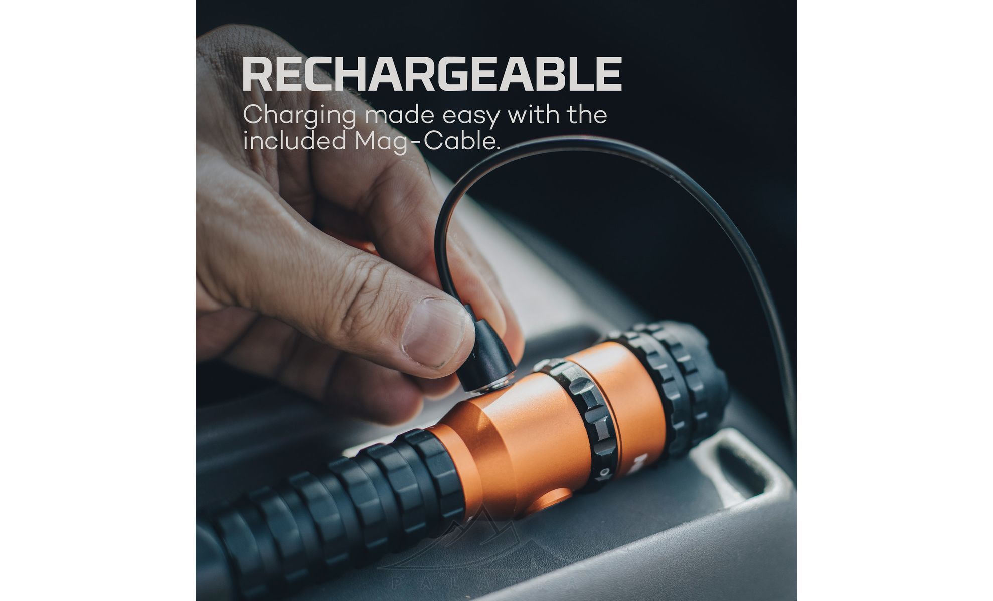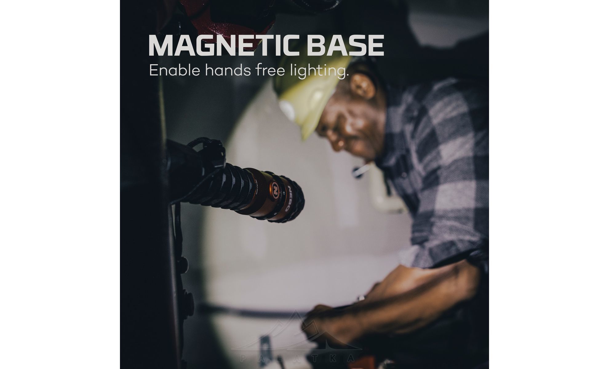 - Магнітна основа — можна фіксувати ліхтар на металевій поверхні для роботи вільними руками.