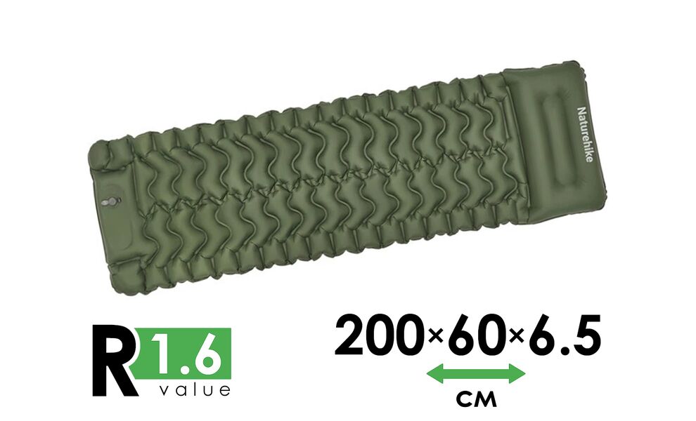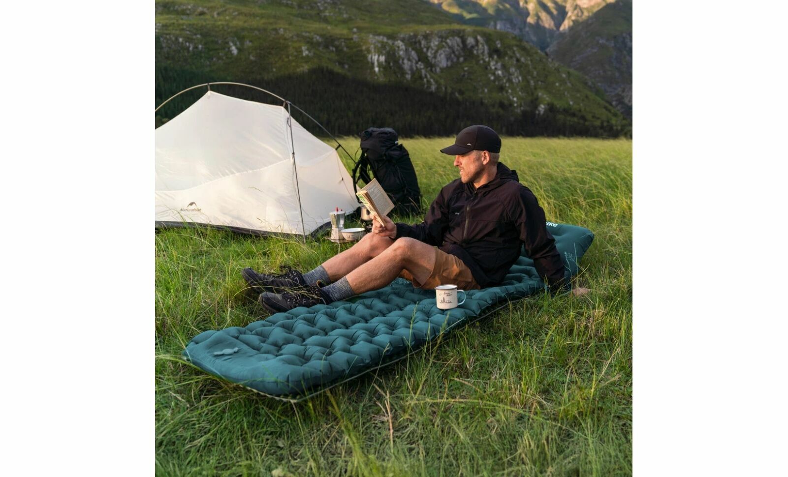 Naturehike CNK2550WS019 - Single — легкий і зручний одномісний надувний каремат з вбудованою подушкою, створений для комфортної організації спального місця під час кемпінгу, походів і відпочинку на природі. Підходить для використання в теплу пору року — навесні, влітку та на початку осені.