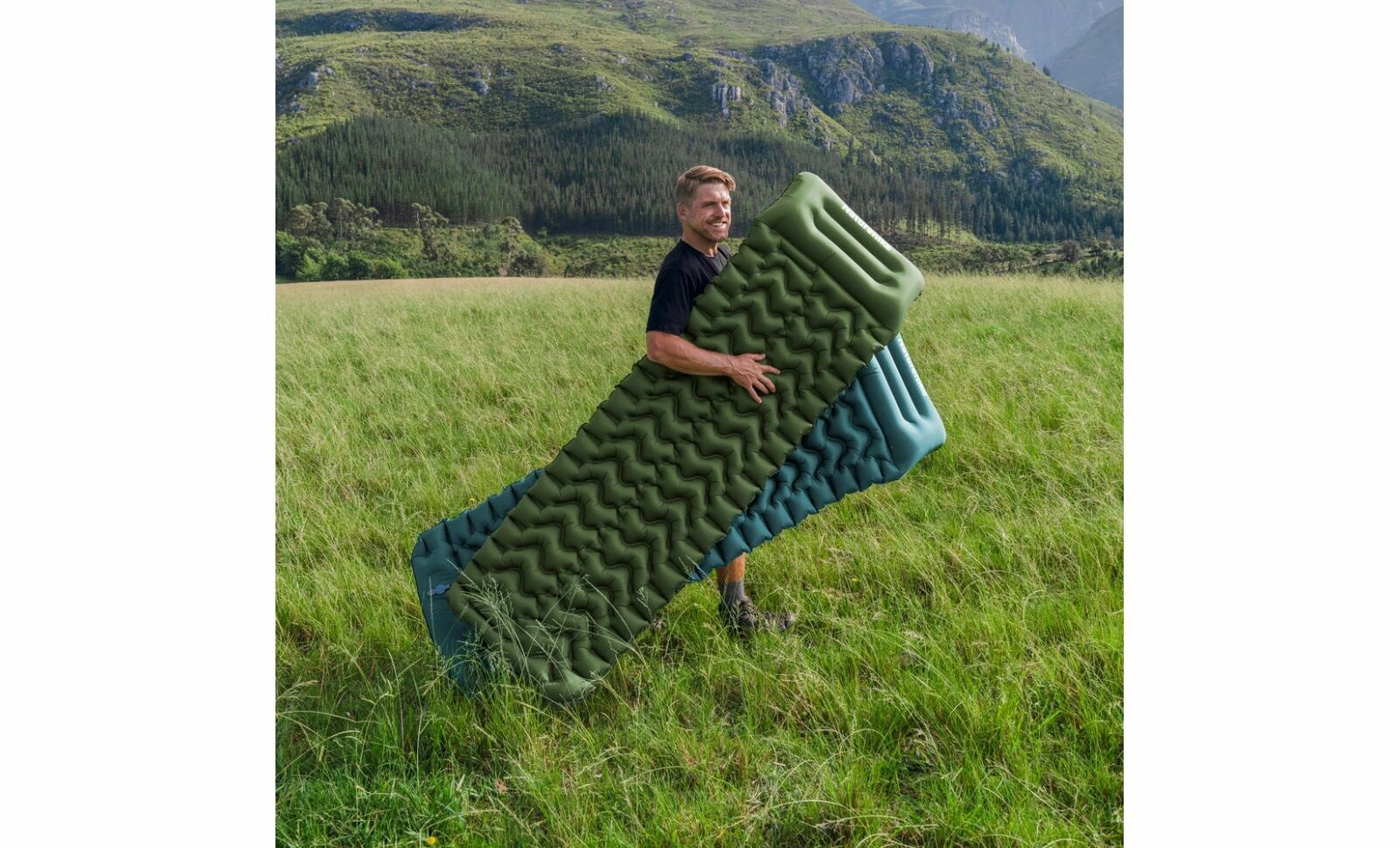 - Надування відбувається за допомогою вбудованої ножної помпи, яка робить процес надування максимально простим і зручним. Достатньо відкрити клапан і ритмічно натискати на помпу стопою — вже за 2–3 хвилини матрац буде повністю готовий до використання. Такий спосіб не потребує насоса чи надування ротом, що особливо зручно в польових умовах. Після надування клапан щільно закривається та надійно утримує повітря всередині, запобігаючи його витоку під час сну чи відпочинку.