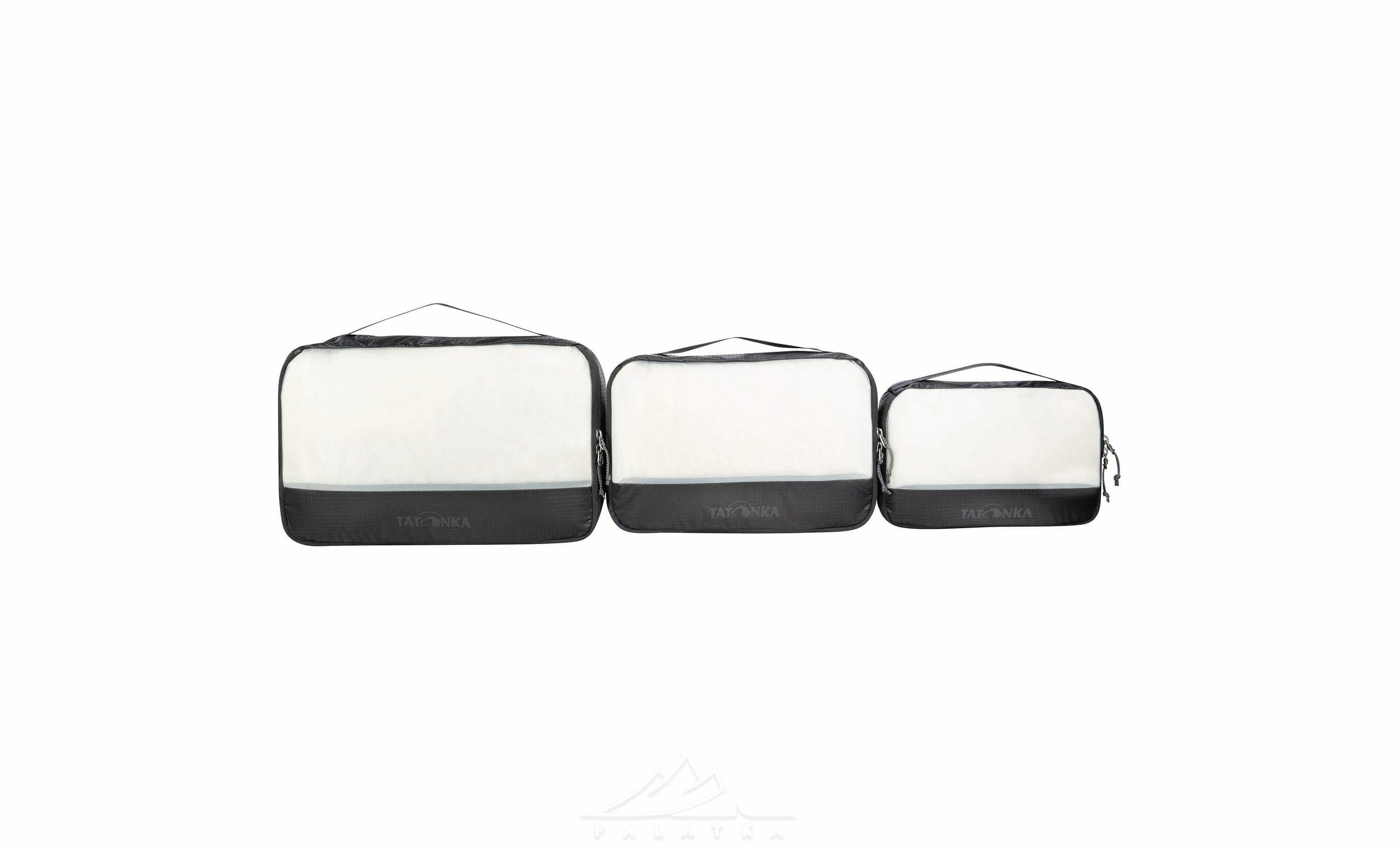 Tatonka Mesh Bag Set — набір із трьох прозорих сітчастих органайзерів різних розмірів для впорядкованого та компактного пакування багажу. Вони допомагають створити порядок у валізі, дорожній сумці чи рюкзаку, а також стискають речі для економії місця.