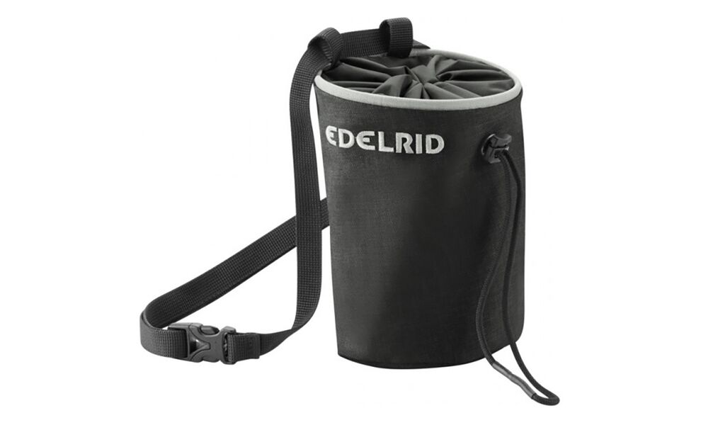 Edelrid Chalk Bag Rodeo — зручна поясна магнезниця класичної циліндричної форми, оснащена регульованим ременем і надійною застібкою зі стяжкою. Підійде як для боулдерингу, так і для тривалих скельних маршрутів, де важливі надійність і комфорт.