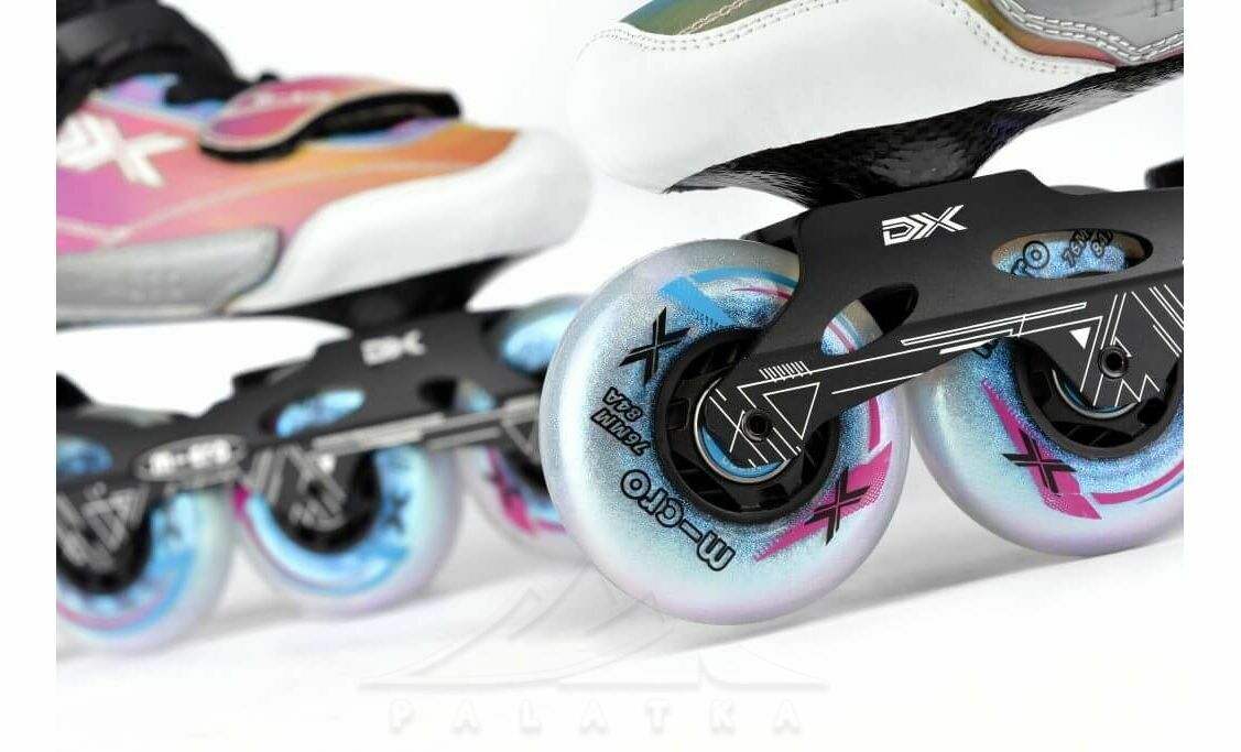 - Верх з iridescent fabric — матеріал робить модель більш виразною на вигляд і водночас підтримує сучасний, спортивний характер роликів.