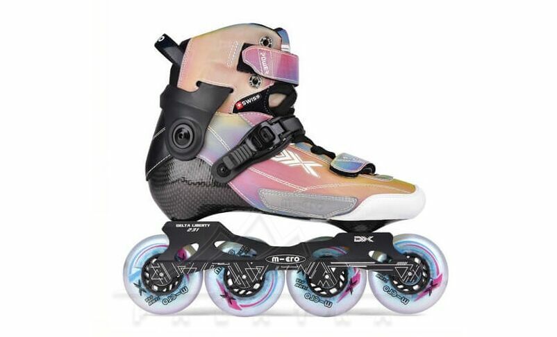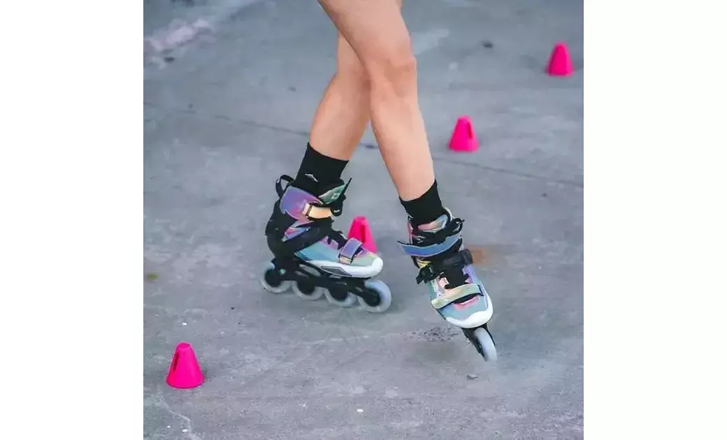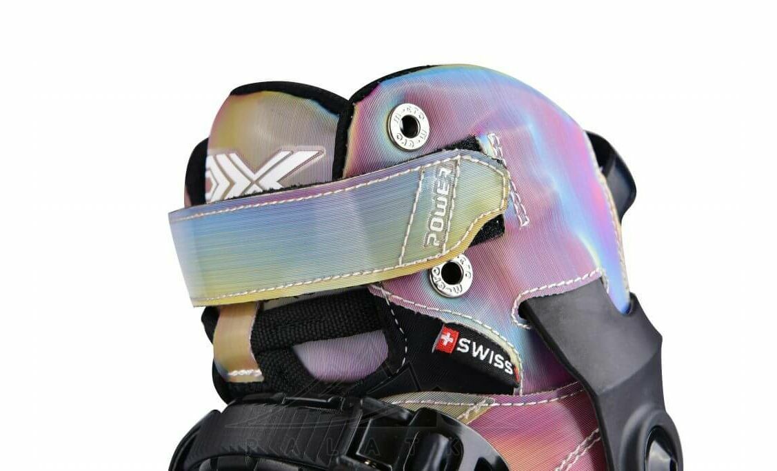 - Верх з iridescent fabric — матеріал робить модель більш виразною на вигляд і водночас підтримує сучасний, спортивний характер роликів.