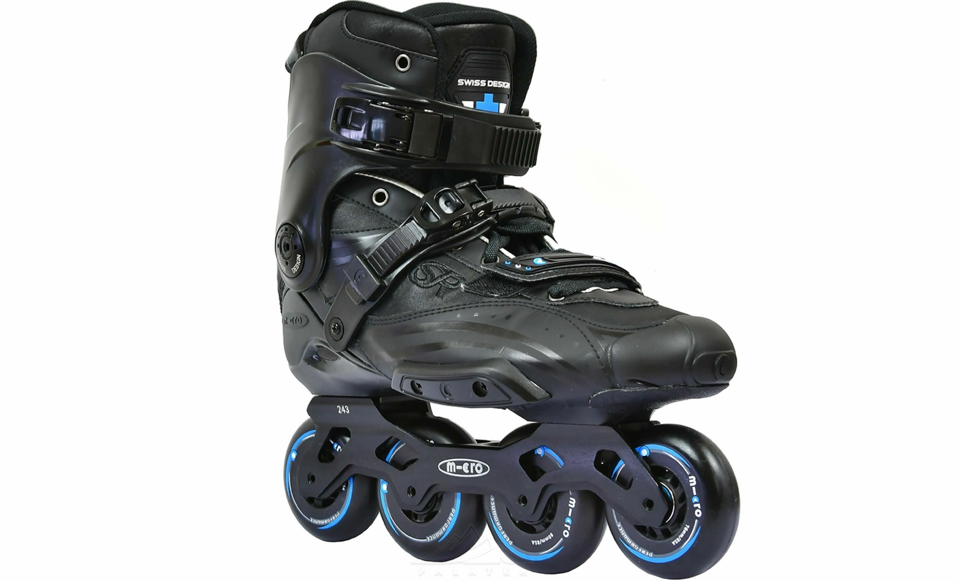 - Верх із композиту поліуретану та шкіри — ролики краще облягають ногу, тому посадка відчувається щільною та комфортною під час катання.