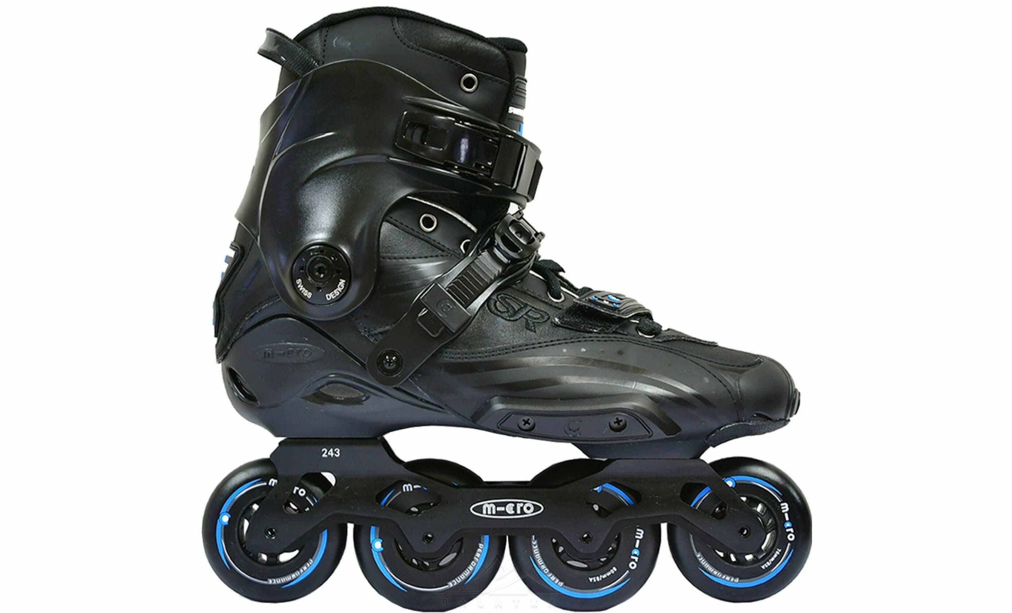 - Верх із композиту поліуретану та шкіри — ролики краще облягають ногу, тому посадка відчувається щільною та комфортною під час катання.