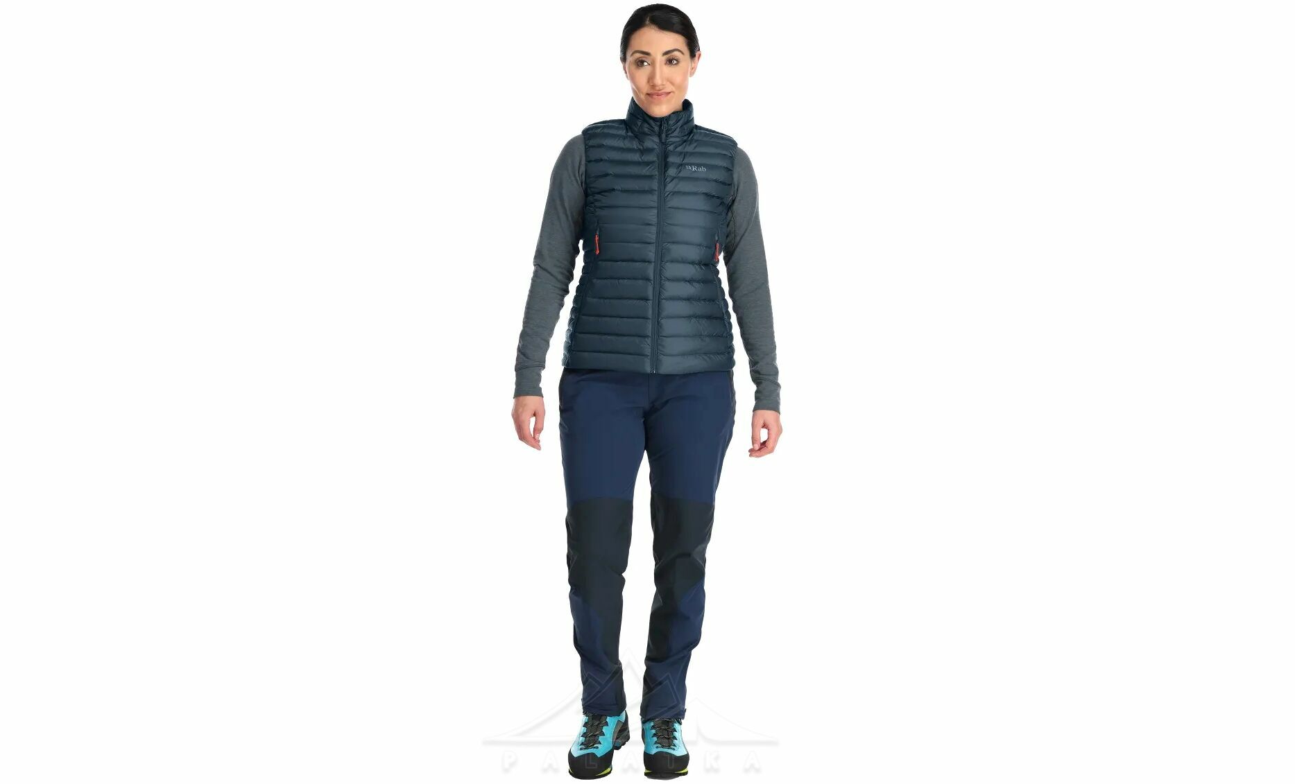 Rab Microlight Vest — легкий жіночий пуховий жилет, який поєднує високу теплоізоляцію з мінімальною вагою та компактністю. Ідеально підходить для гірських маршрутів, міських прогулянок та повсякденного використання.