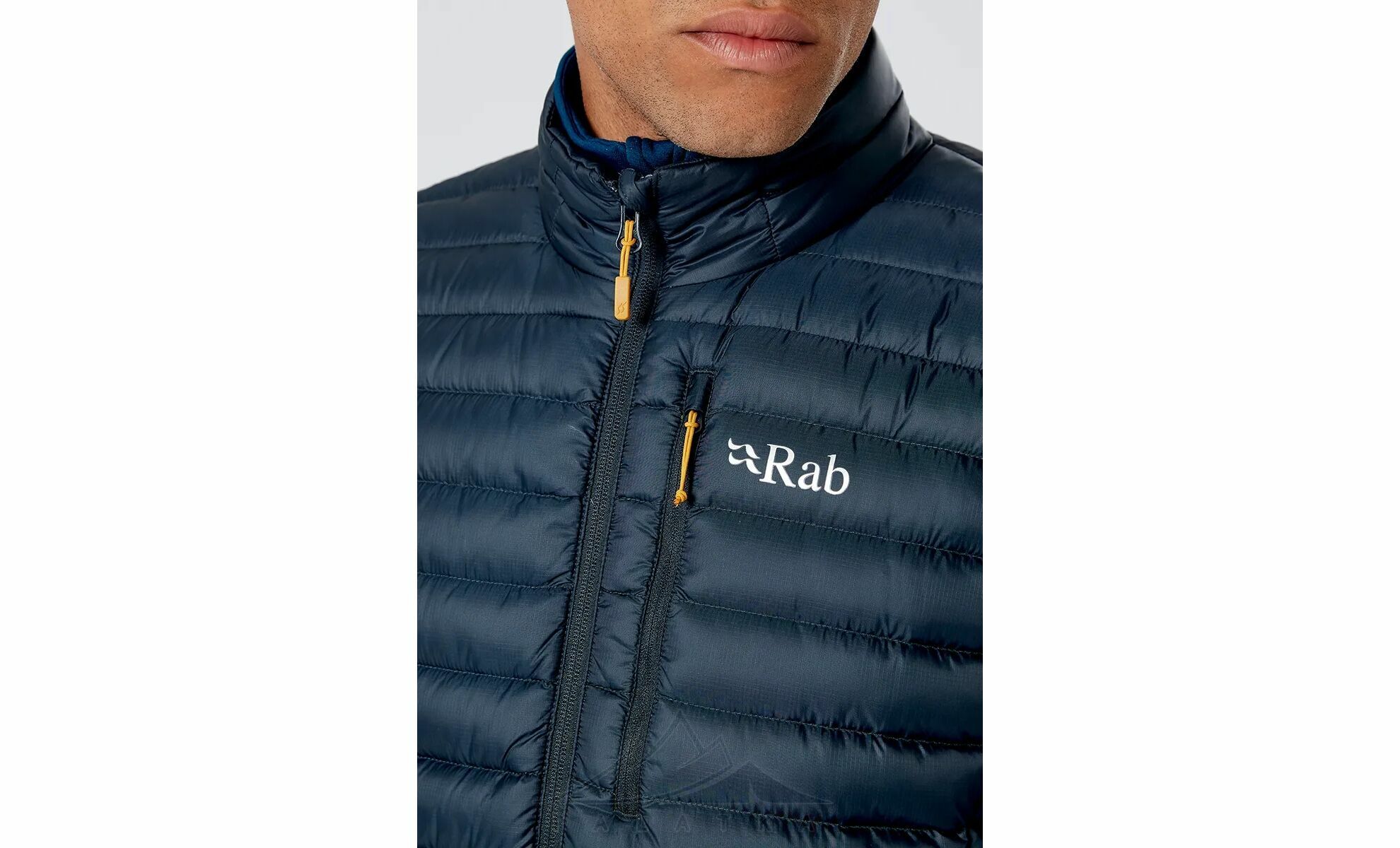 Rab Microlight Vest — легкий чоловічий пуховий жилет, який поєднує високу теплоізоляцію з мінімальною вагою та компактністю. Ідеально підходить для гірських маршрутів, міських прогулянок та повсякденного використання.
