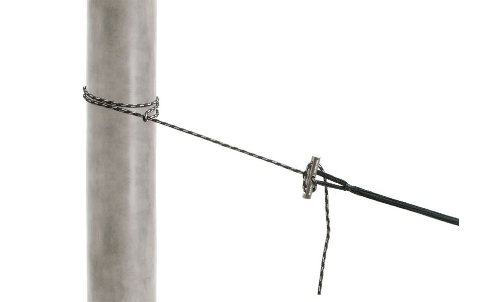 - Алюмінієвий фіксатор надійно утримує кріплення на міці та дозволяє регулювати довжину мотузки