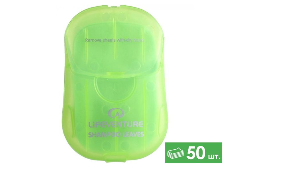 Lifeventure Shampoo Leaves — це листовий шампунь, який виручить вас у походах та подорожах. В компактній упаковці ви знайдете 50 одноразових листків, які легко піняться та ефективно очищують.