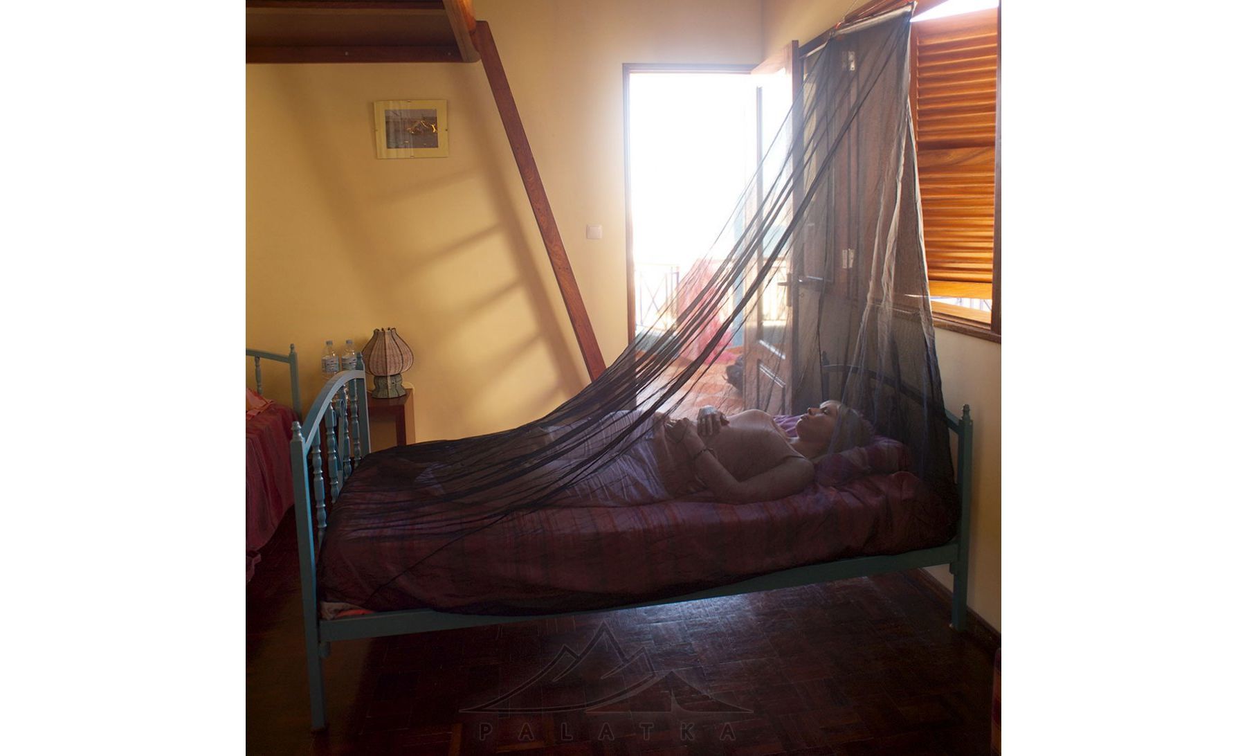 - Має чотири точки кріплення - може накрити двоспальне ліжко, розкладне ліжко або спальний мішок.