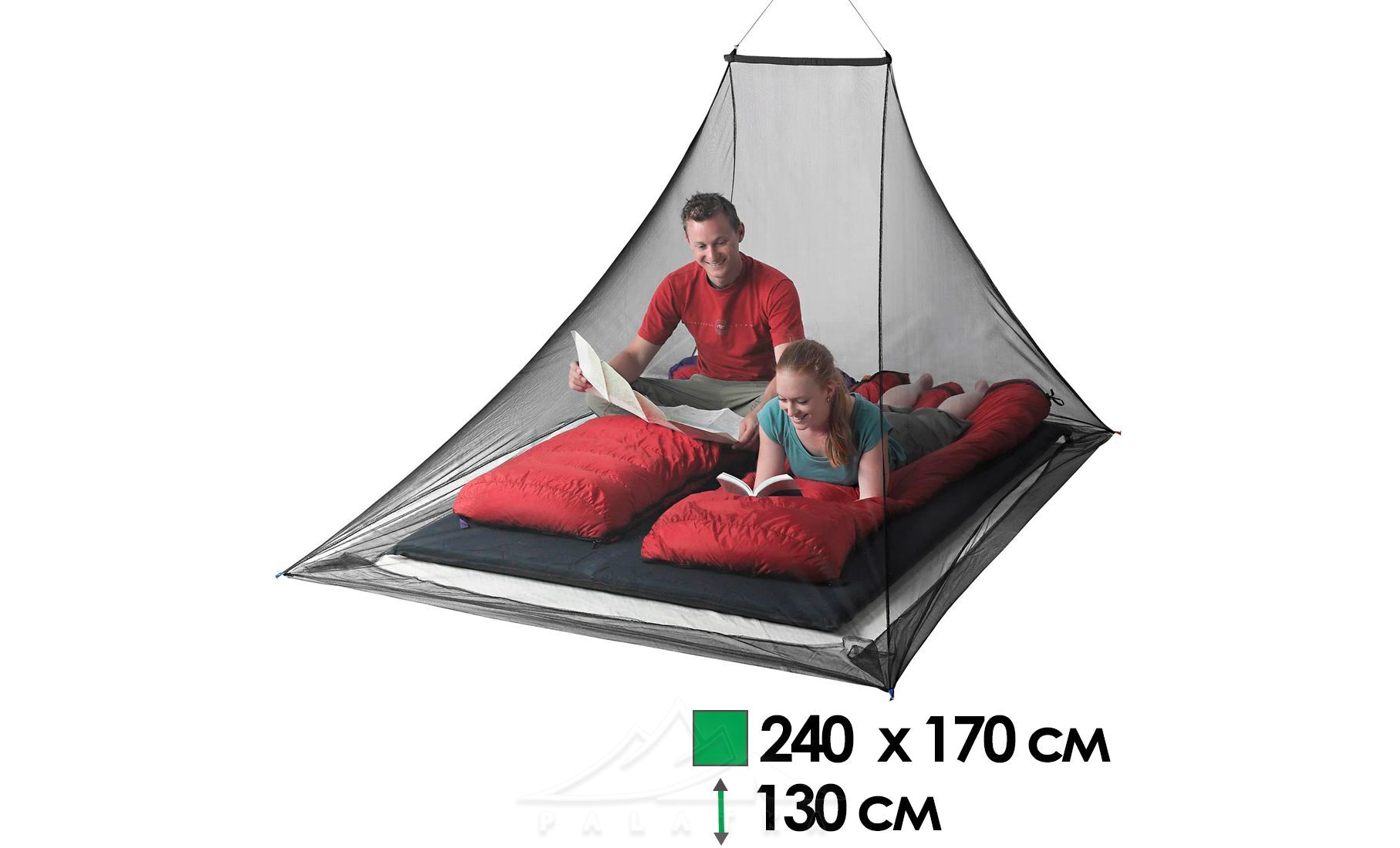 Москітна сітка Sea to Summit Mosquito Pyramid — сітка у формі піраміди з асиметричною точкою підвісу, розрахована на два спальних місця. Стане в нагоді як вдома, так і в поході для захисту спального місця від проникнення комах, що кусають.