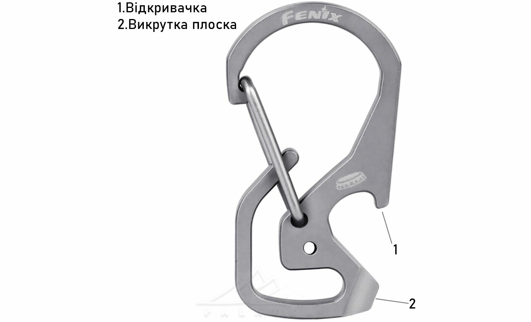 Fenix ALB-20 — це багатоцільовий компактний брелок-мультитул з титану, що поєднує у собі декілька функцій — може використовуватись як карабін, плоска викрутка та відкривачка. Відмінно підійде для щоденного носіння, під час походів, чи риболовлі.