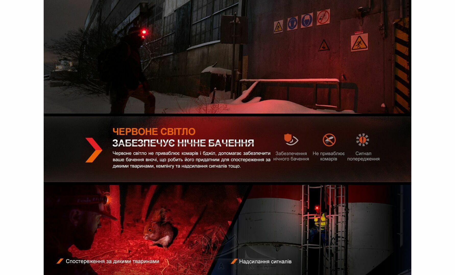 - 5 режимів білого світла + 2 режими червоного + червоний мерехтливий — гнучке налаштування під різні задачі.
