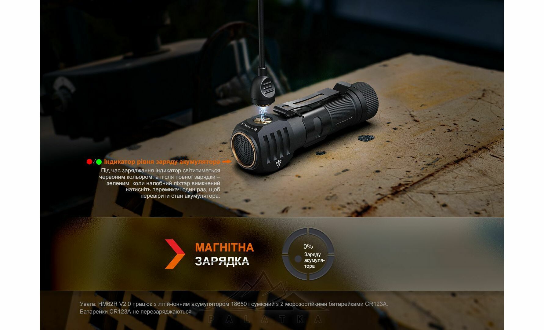 Налобний ліхтар Fenix HM61R V2.0 — потужна акумуляторна модель з червоним світлом і магнітною зарядкою для походів, роботи, сервісних задач та повсякденного використання. Підійде тим, кому потрібен універсальний ліхтар у форматі 2 в 1: як налобний, так і для ручного/робочого використання, з надійним захистом і великим запасом яскравості. Ліхтар має магнітний порт заряджання, індикацію рівня заряду, а також магнітну основу для зручної фіксації на металевих поверхнях.