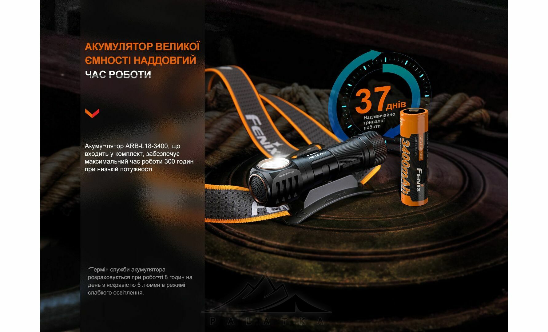 - У комплекті акумулятор Fenix ARB-L18-3400 (3400 mAh), магнітний кабель та ущільнювальне кільце — можна користуватися та заряджати без додаткових покупок на старті.