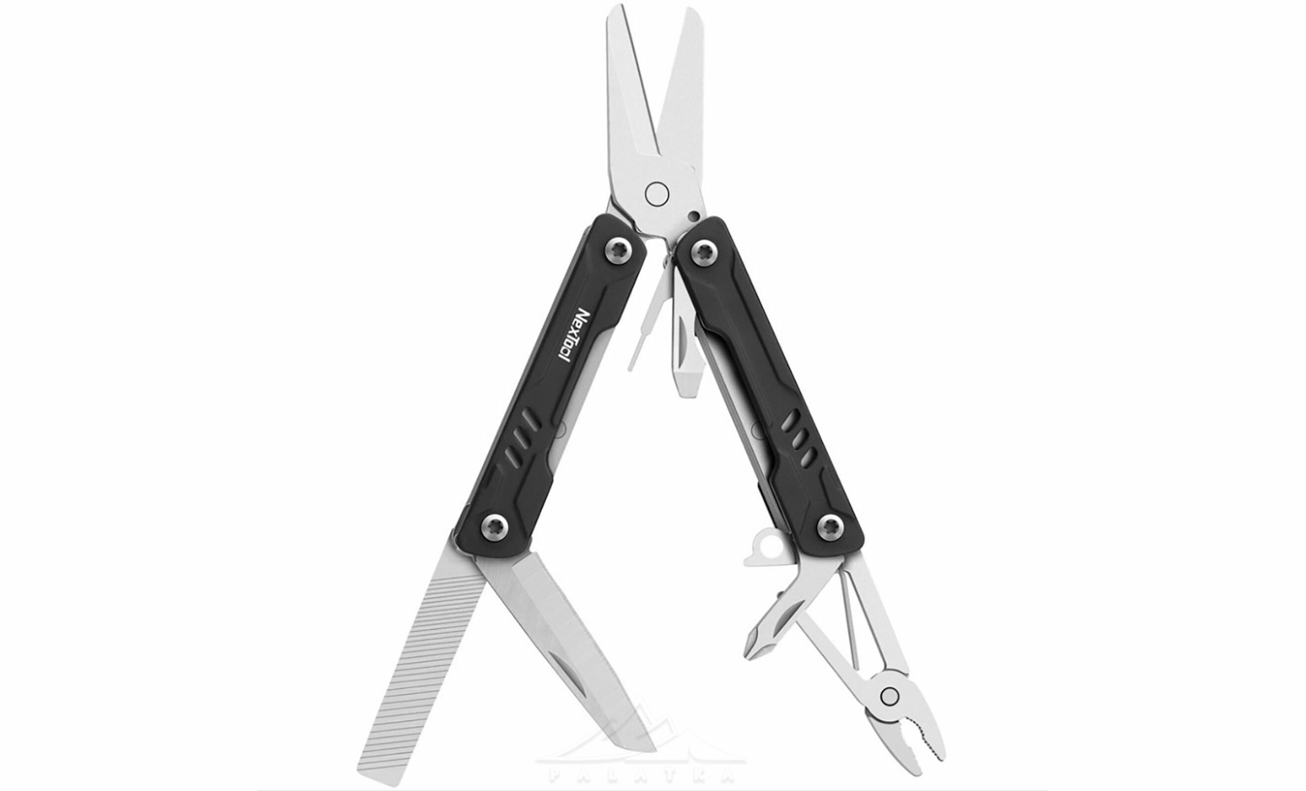 - Кожен інструмент розкладається однією рукою та надійно фіксується.