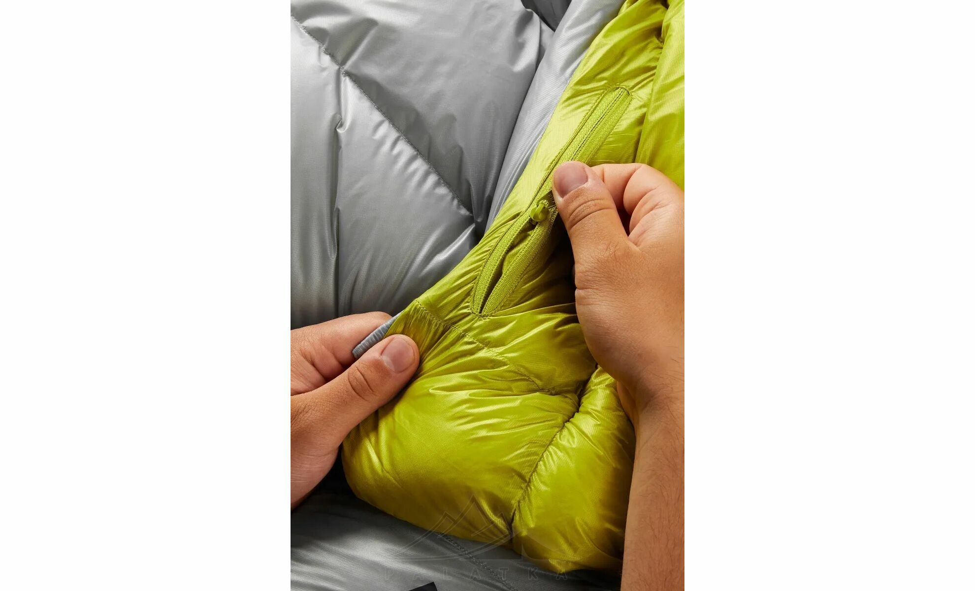 - Конструкція: V-подібні (chevron) камери, які утримують пух у правильному положенні та оптимізують збереження тепла; трапецієподібні камери з диференційним кроєм для максимального розпушування пуху; утеплений регульований внутрішній комір і планка вздовж блискавки проти протягів; YKK-блискавка ¾ довжини з антисніговим захистом від закусування.
