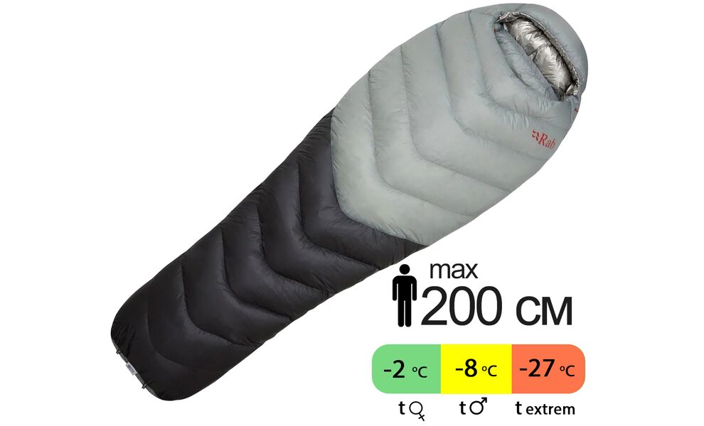 Rab Mythic Ultra 360 — надлегкий пуховий спальник, створений для альпіністів і учасників гірських марафонів, де кожен грам ваги має значення. Завдяки інноваційним матеріалам та технології TILT (Thermo Ionic Lining Technology) він забезпечує максимальне співвідношення тепла до ваги, відбиваючи тепло тіла назад без втрати дихаючих властивостей. Це справжній прорив для тих, хто прагне мінімальної ваги спорядження без компромісів у теплі.