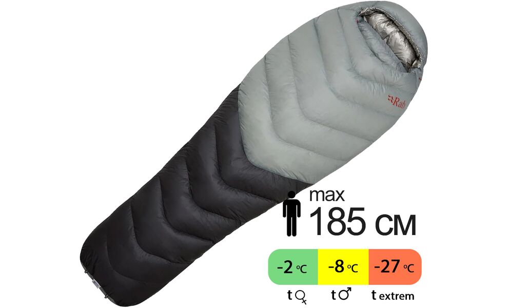 Rab Mythic Ultra 360 — надлегкий пуховий спальник, створений для альпіністів і учасників гірських марафонів, де кожен грам ваги має значення. Завдяки інноваційним матеріалам та технології TILT (Thermo Ionic Lining Technology) він забезпечує максимальне співвідношення тепла до ваги, відбиваючи тепло тіла назад без втрати дихаючих властивостей. Це справжній прорив для тих, хто прагне мінімальної ваги спорядження без компромісів у теплі.
