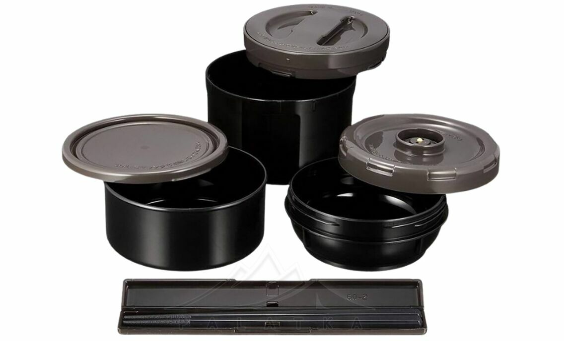 - Три контейнери різних об'ємів дозволяють брати із собою декілька страв одночасно; компактно вміщуються всередину термоса для зручного транспортування та роздільного зберігання їжі.