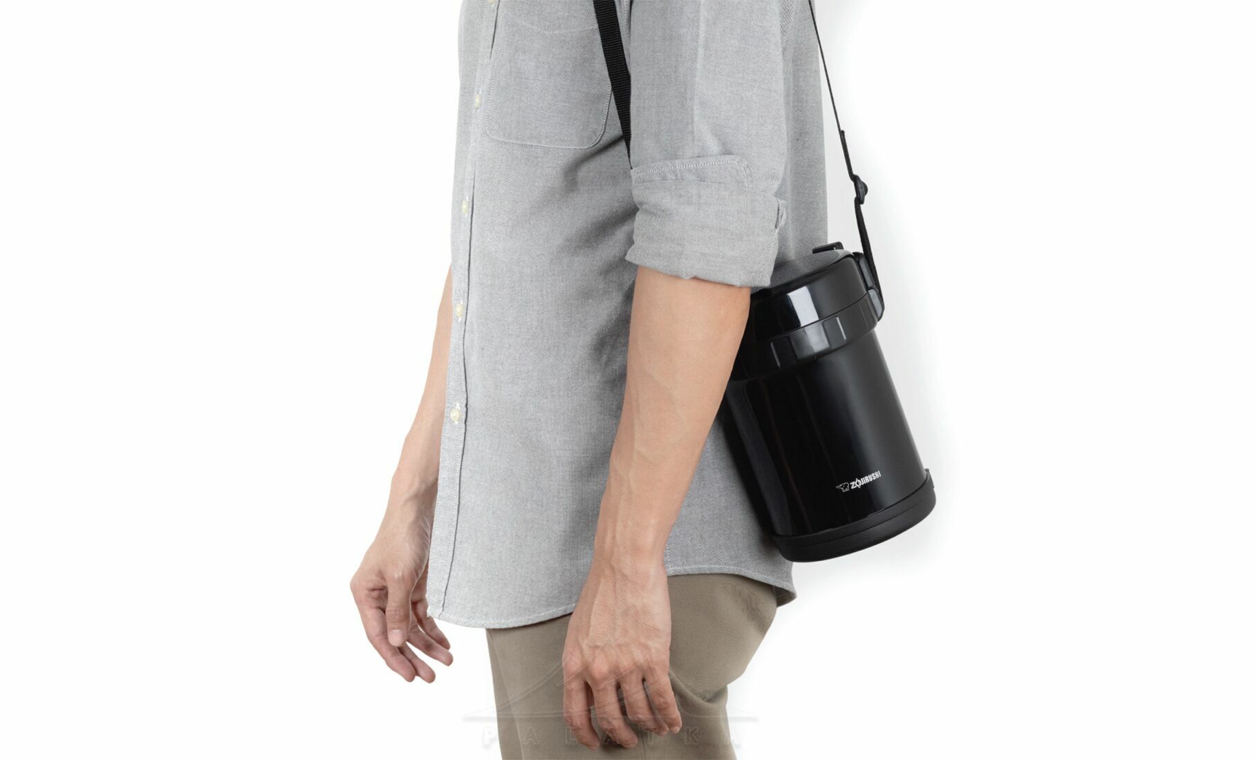 - Знімний плечовий ремінь легко кріпиться та дає змогу зручно носити термос з собою.