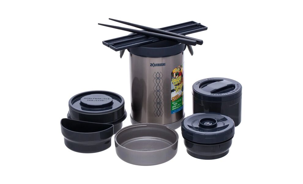 Zojirushi SL-NC09 — зручний і практичний набір для ланчу, що включає вакуумний термопосуд з герметичною гвинтовою пробкою, та три контейнери для повноцінного обіду. Термос ефективно зберігає температуру як гарячих, так і холодних страв протягом тривалого часу. Ідеальне рішення для щоденного використання, пікніків або риболовлі.