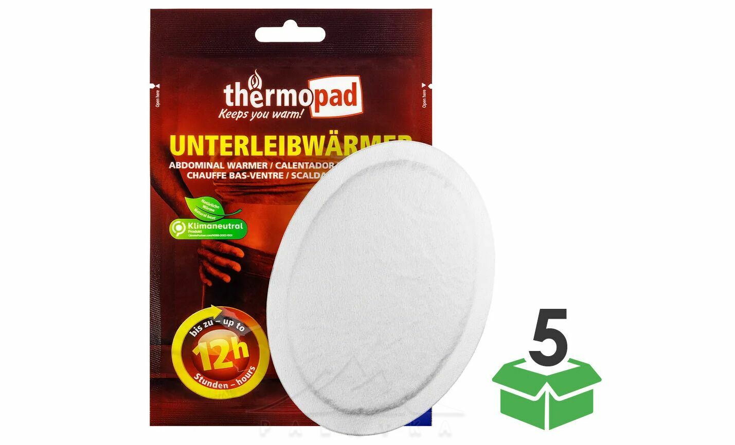 Thermopad Abdominal Warmer — одноразова грілка для тіла, що активується повітрям. Виробляє тепло до 12 годин. Використовується поверх термобілизни або іншого першого шару одягу. Має липкий шар на звороті для закріплення на одязі. Грілки для тіла ідеально підходять для будь-яких заходів на свіжому повітрі, таких як зимові види спорту або зимові прогулянки.