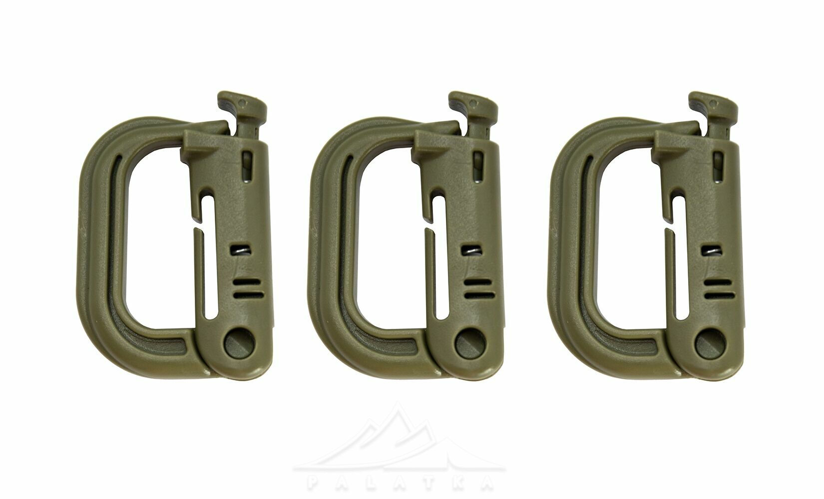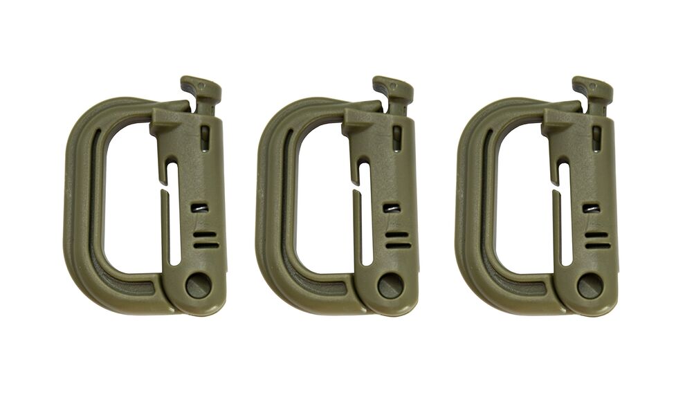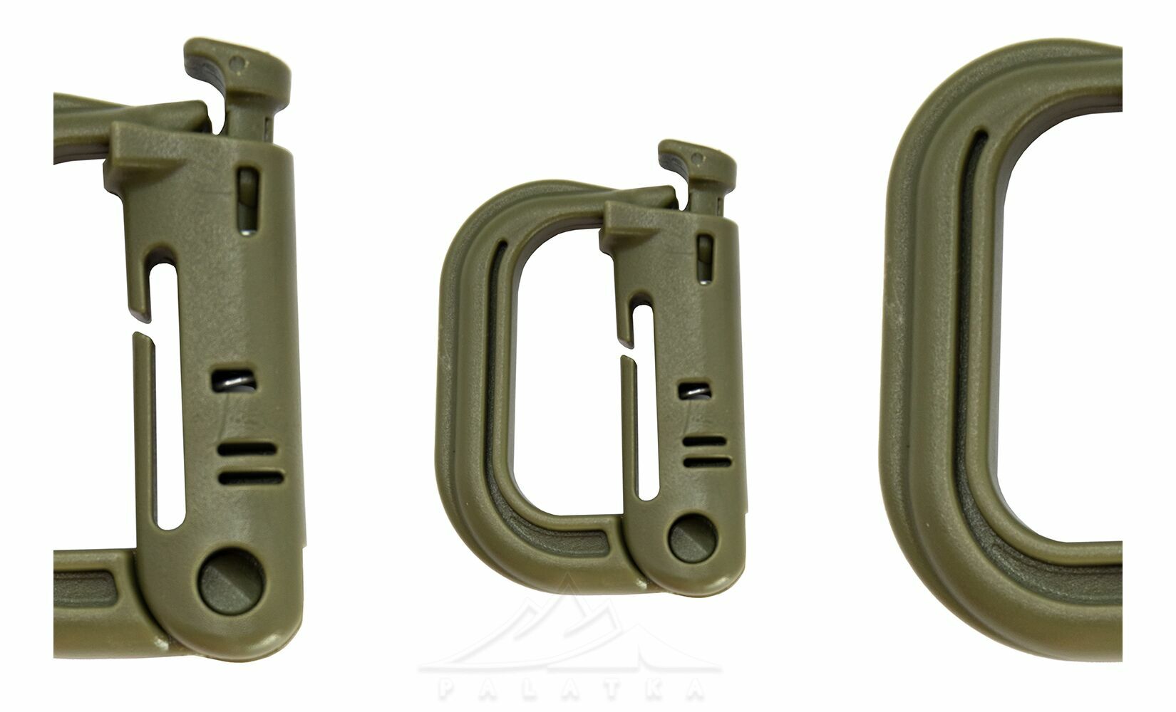Набір карабінів Tramp Grimlock — пластикові допоміжні карабіни, здатні розкриватися навпіл. Підходить для стропи шириною до 25 мм (наприклад, система MOLLE). Застосовується для кріплення підсумків, мотузки, елементів спорядження або одягу.