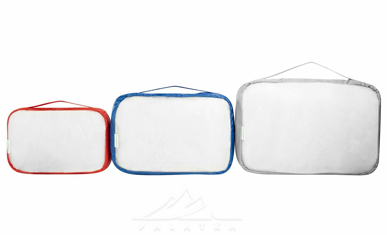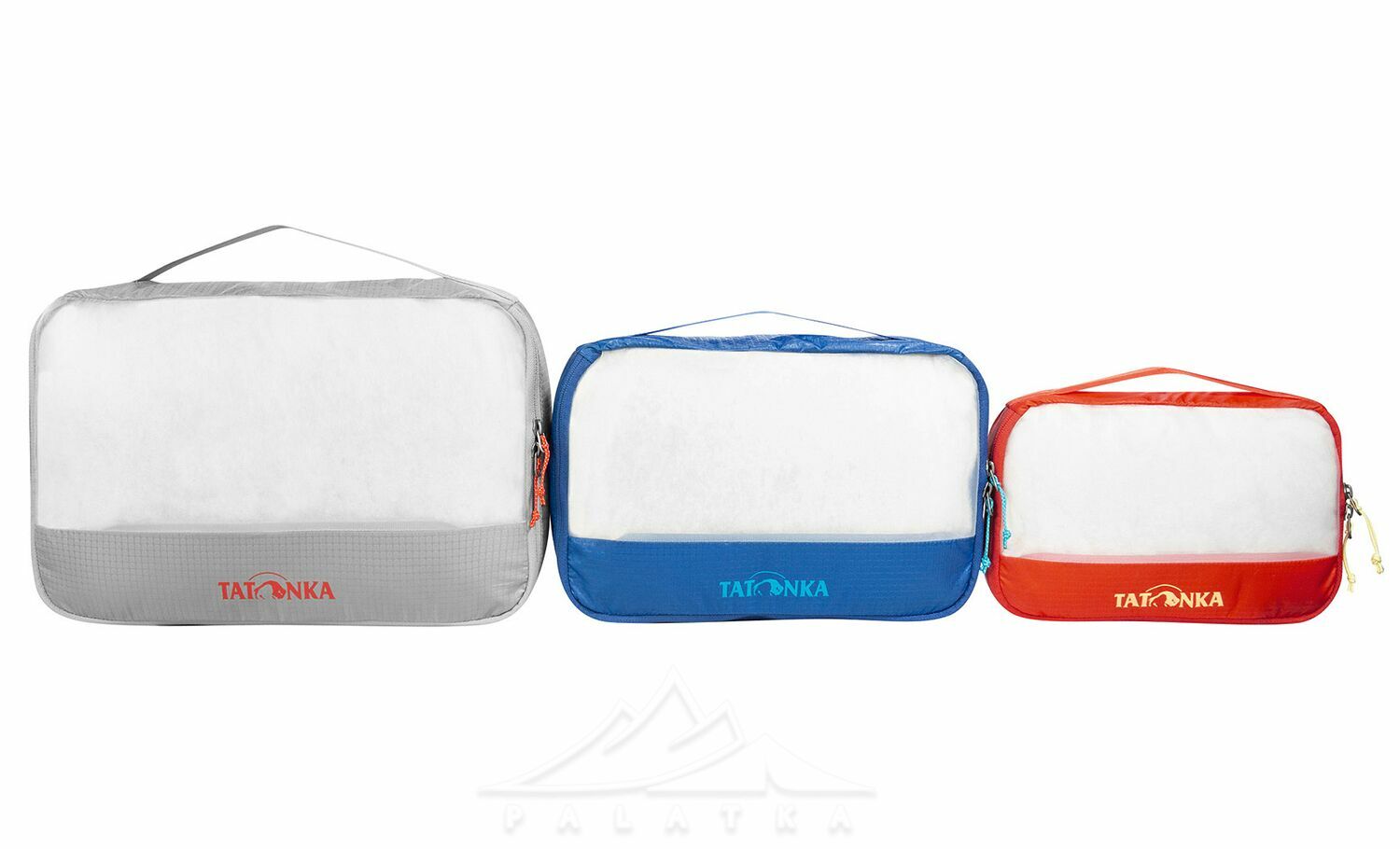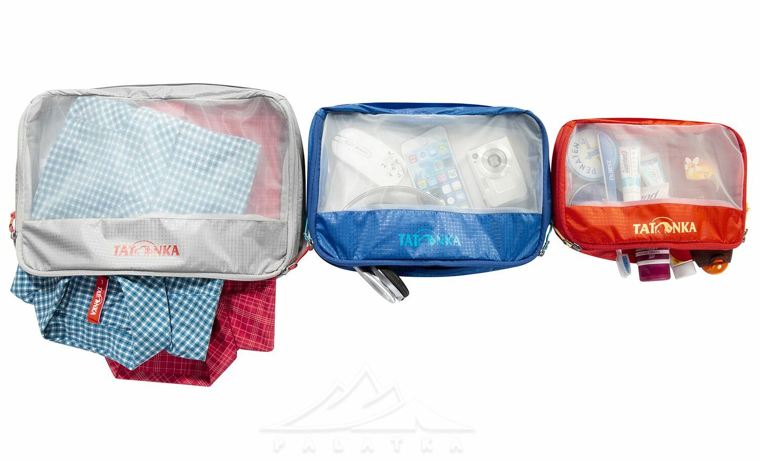 Tatonka Mesh Bag Set — набір із трьох прозорих сітчастих органайзерів різних розмірів для впорядкованого та компактного пакування багажу. Вони допомагають створити порядок у валізі, дорожній сумці чи рюкзаку, а також стискають речі для економії місця.
