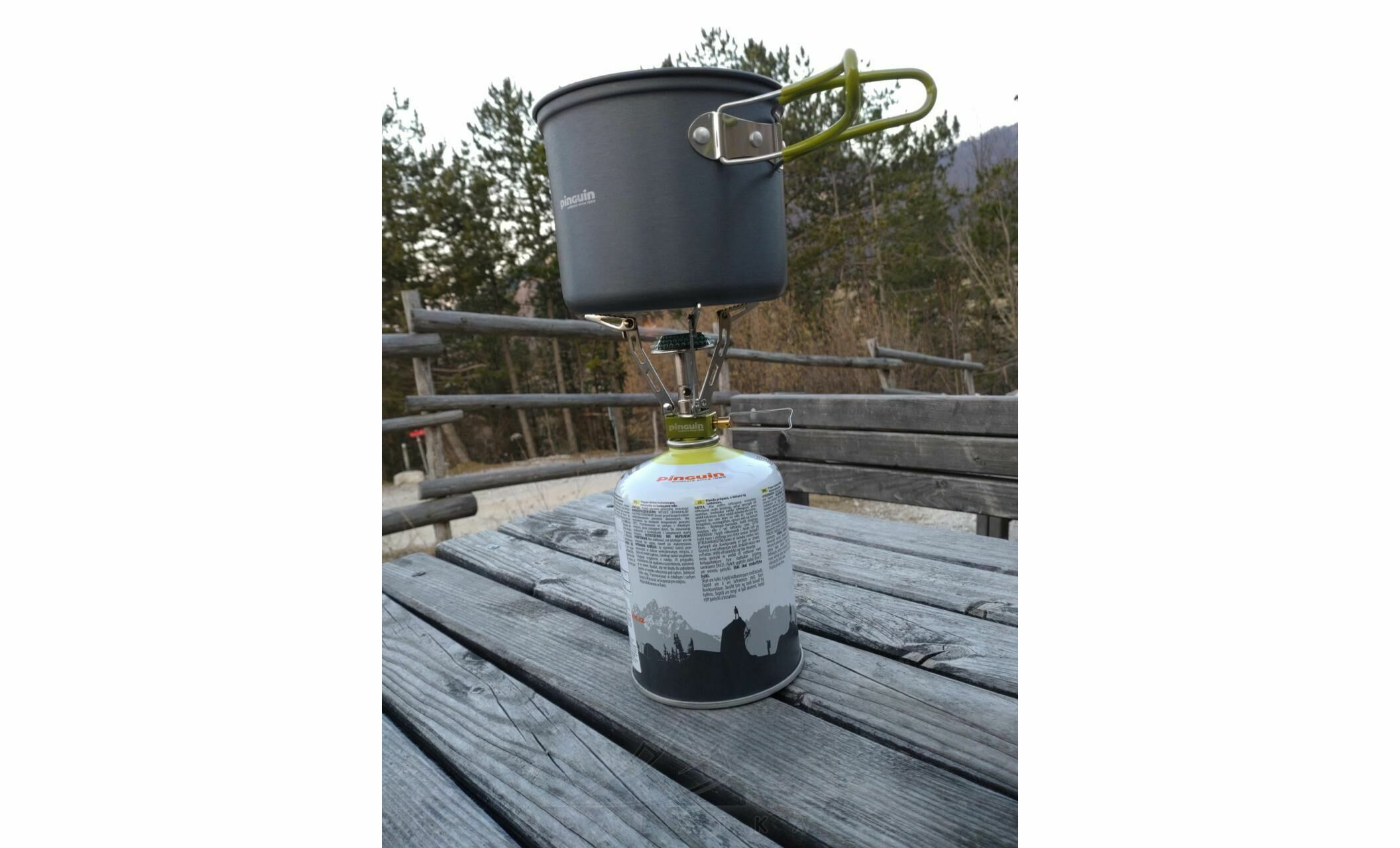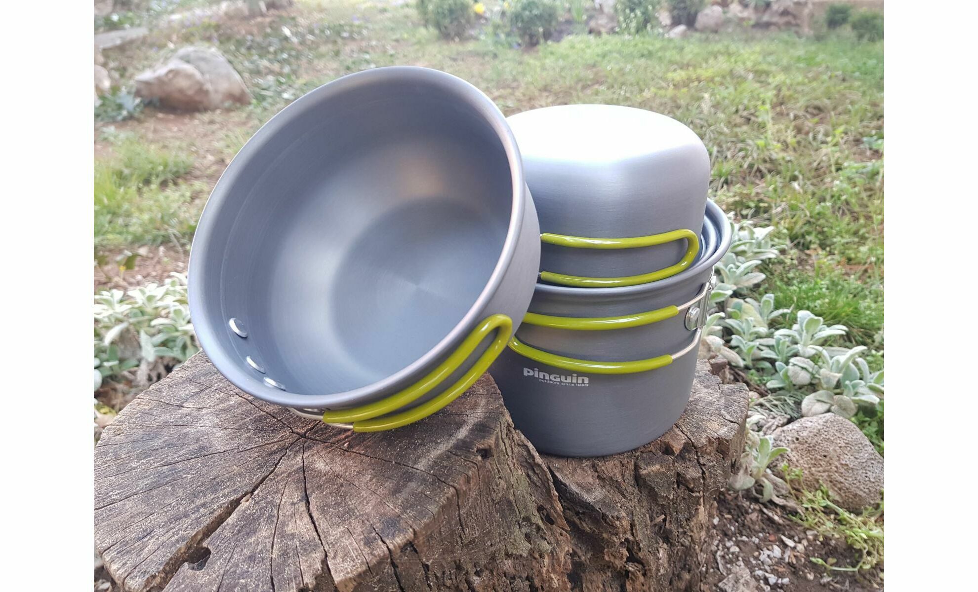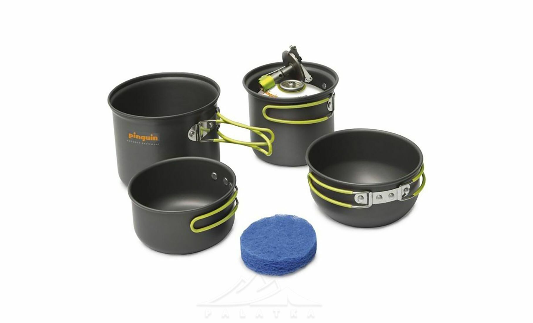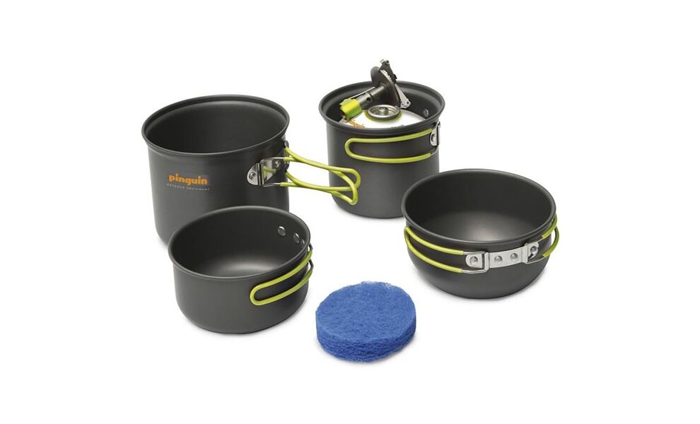 Pinguin Double — базовий набір посуду з анодованого алюмінію для приготування їжі в похідних умовах. Відмінно підійде для подорожей з рюкзаком. Розрахований на двох осіб.