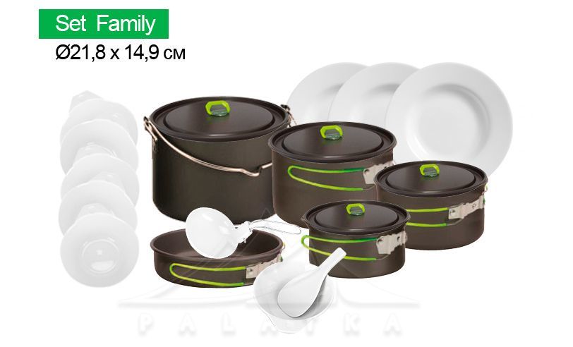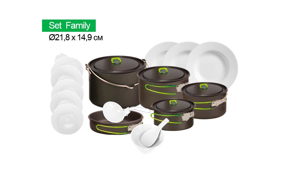 Pinguin Family — найбільший набір кемпінгового посуду від виробника, призначений для приготування та вживання їжі. Розрахований на велику групу з п'яти-шести осіб.