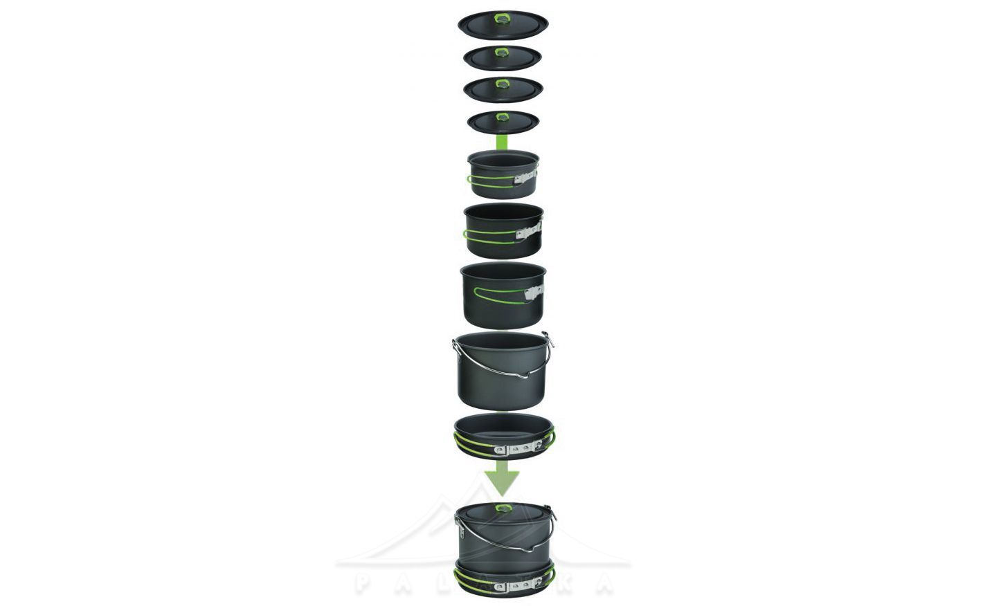 - Весь посуд компактно складається один в один та займає мінімум місця.