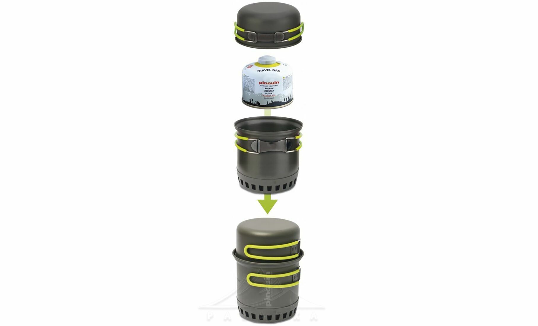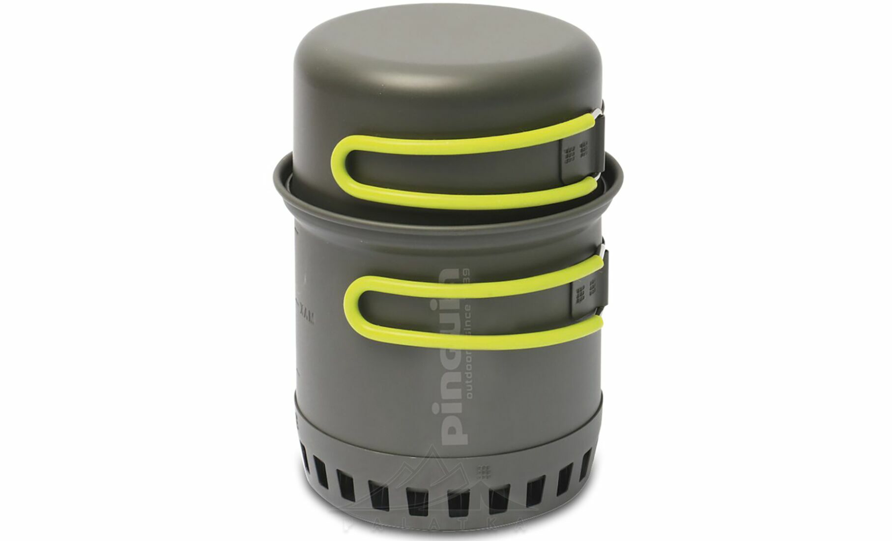 Pinguin Solo X — базовий набір посуду з анодованого алюмінію для приготування їжі в похідних умовах, що має теплоомбінник. Відмінно підійде для самостійних подорожей з рюкзаком.