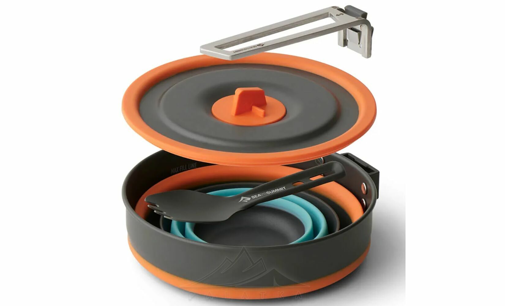 - Збільшений радіус заокруглення між дном і стінками каструлі полегшує перемішування та очищення, а також ідеально підходить для використання з посудом Sea to Summit.