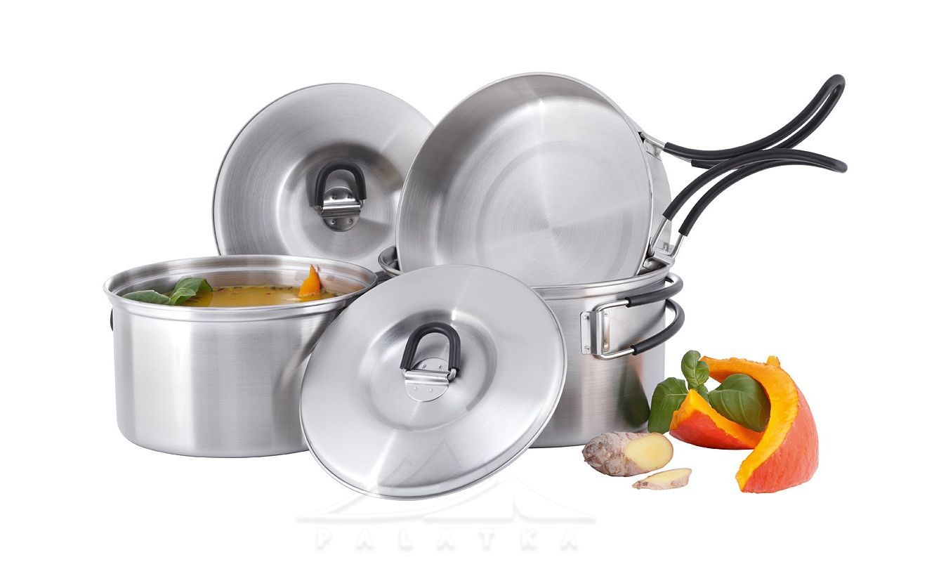 Tatonka Cookset — набір посуду з нержавіючої сталі, для приготування їжі в похідних умовах. Розрахований на двох осіб.