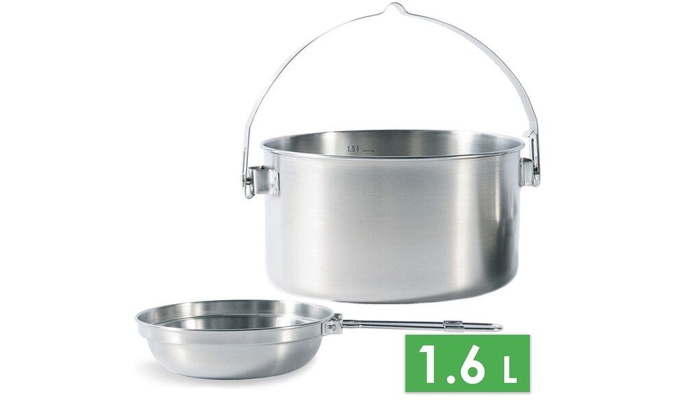 Tatonka Kettle — функціональний набір посуду з нержавіючої сталі для приготування їжі в похідних умовах. Розрахований на дві особи.