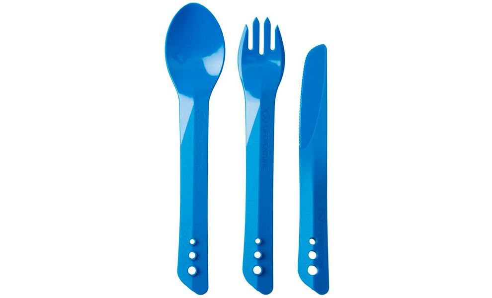 Lifeventure Ellipse Cutlery Set — універсальний набір столових приборів з міцного термостійкого пластику, що включає ложку, виделку, та ніж. Практичне доповнення для кемпінгової кухні, під час походів, та відпочинку на природі.